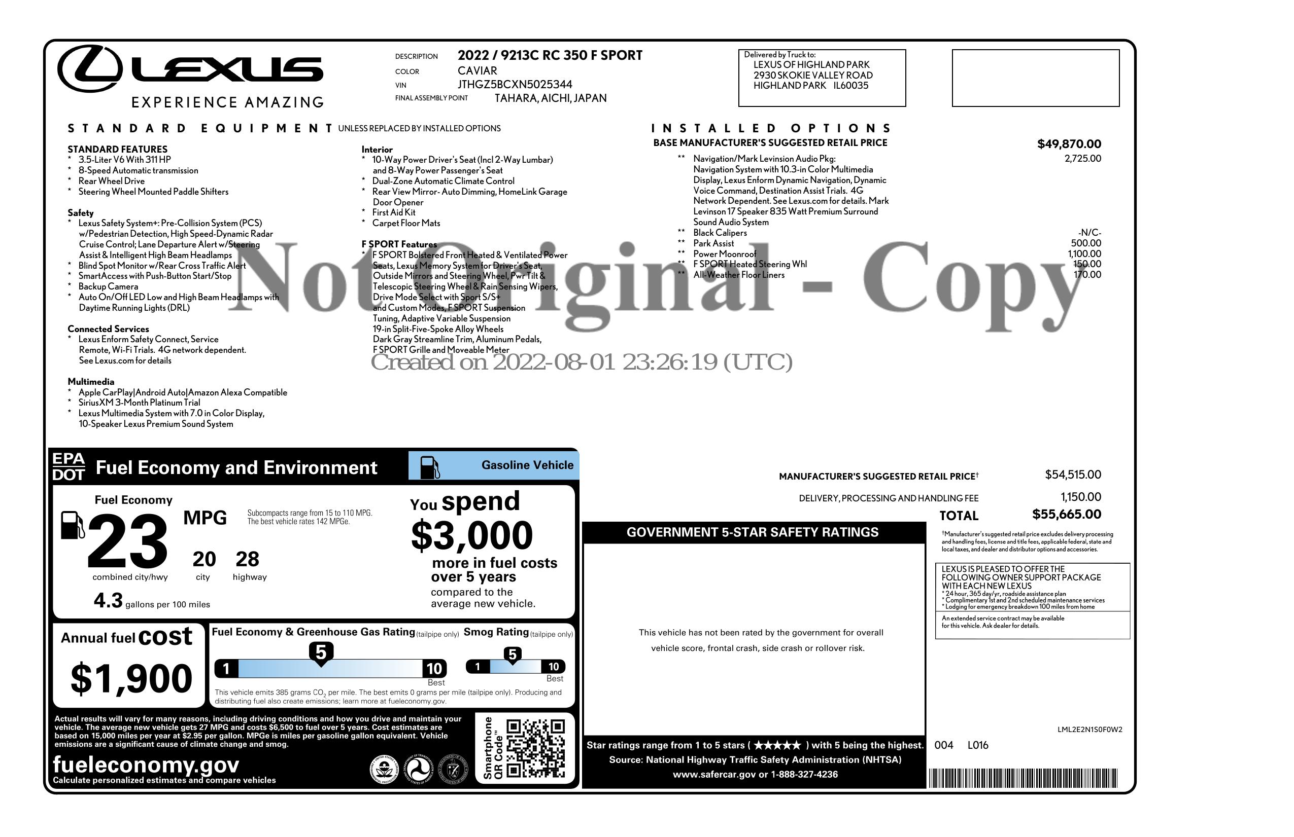 2022 Lexus Rc Rc 350 F Sport Rwd