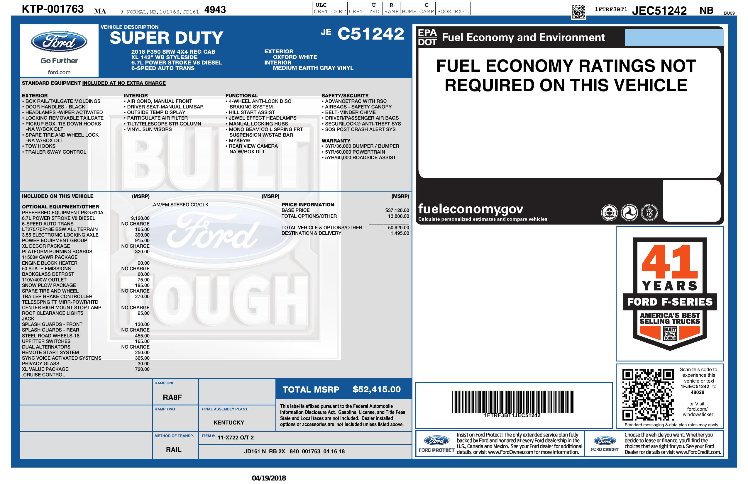 2018 Ford Super Duty F 350 Srw 4 Wd Reg Cab 8' Box