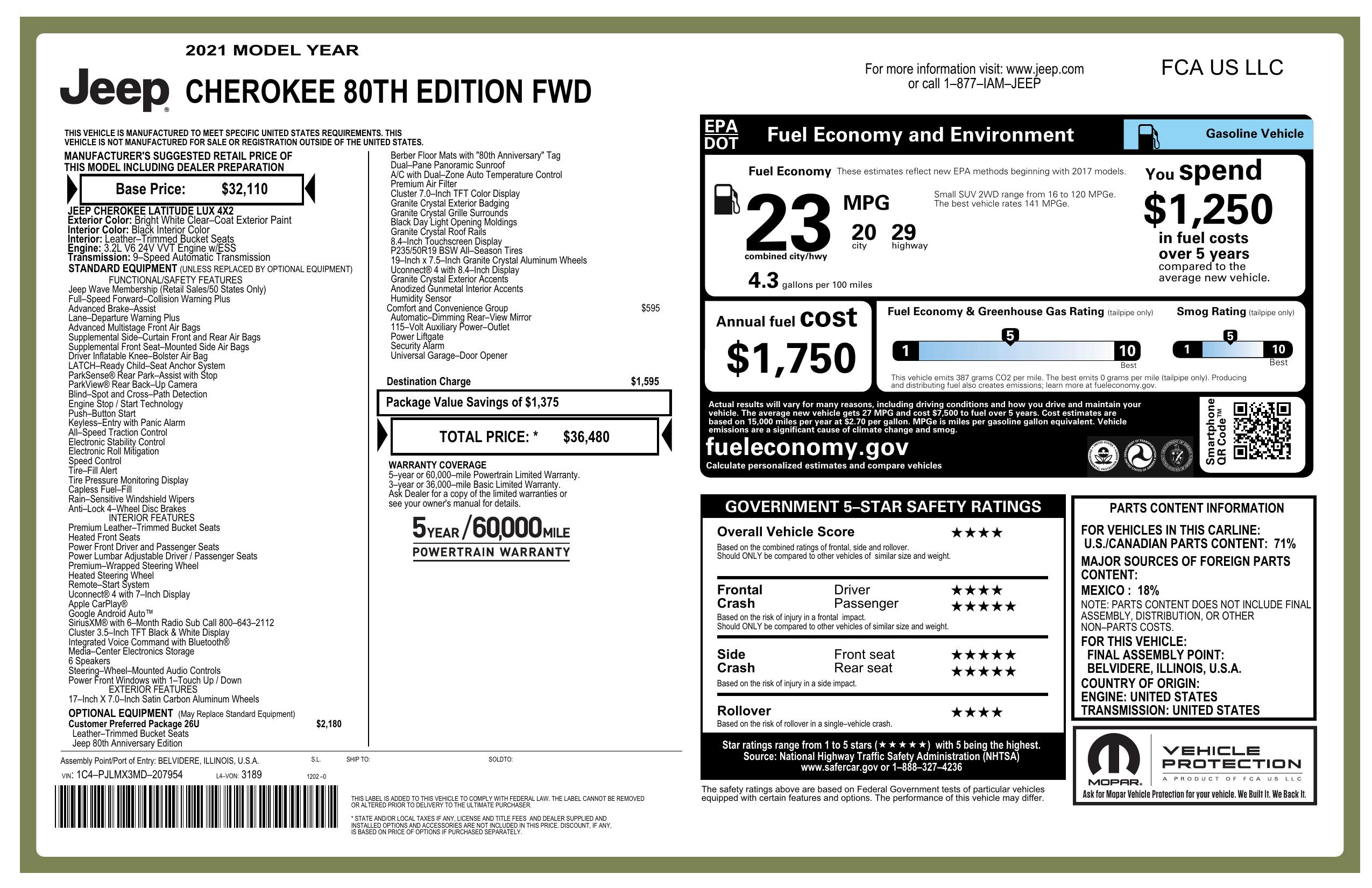 2021 Jeep Cherokee 80th Anniversary Fwd