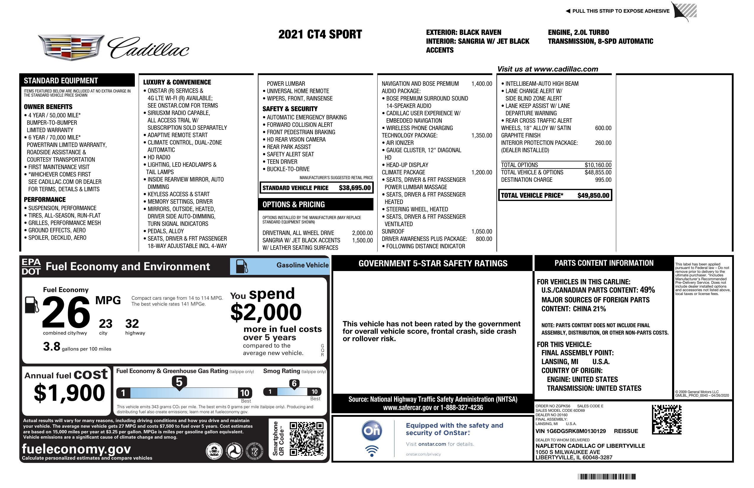 2021 Cadillac Ct4 4dr Sdn Sport
