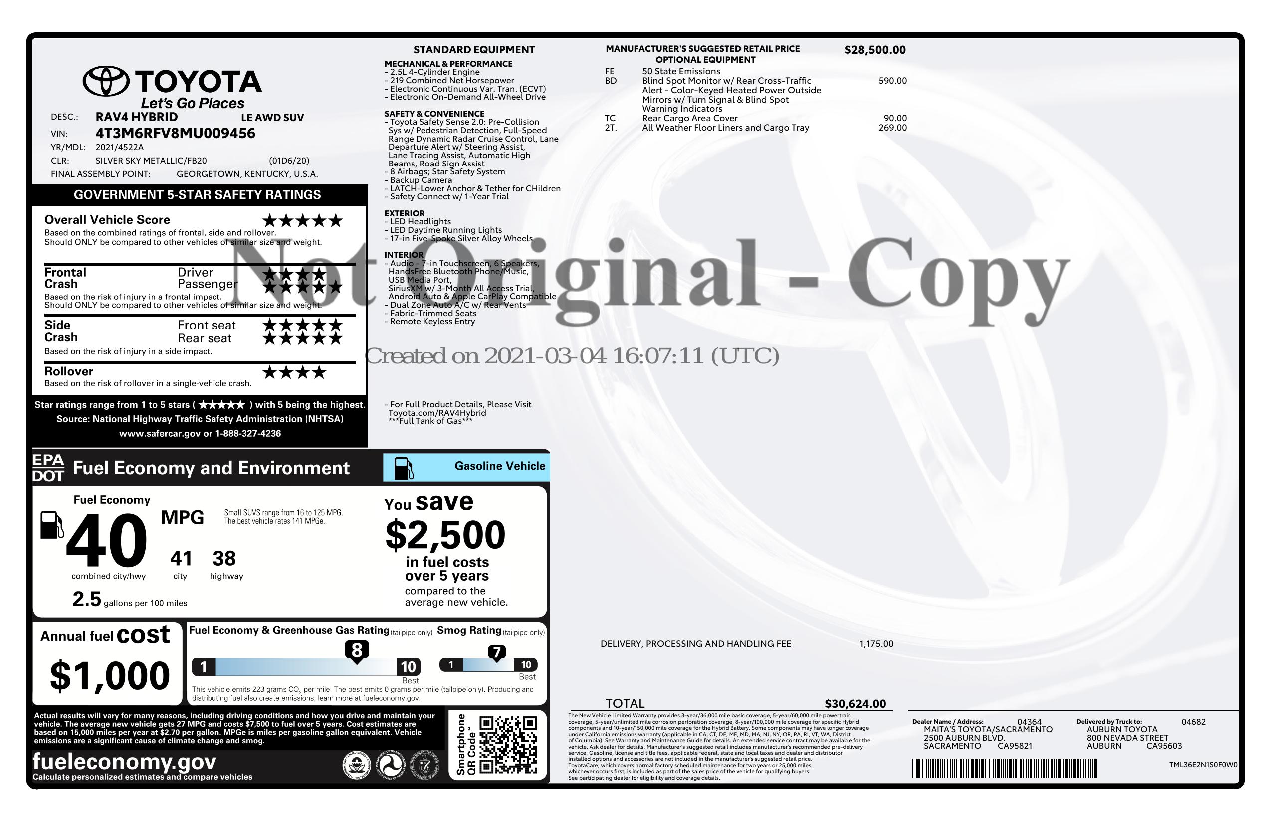 2021 Toyota Rav4 Hybrid Le Awd (Natl)