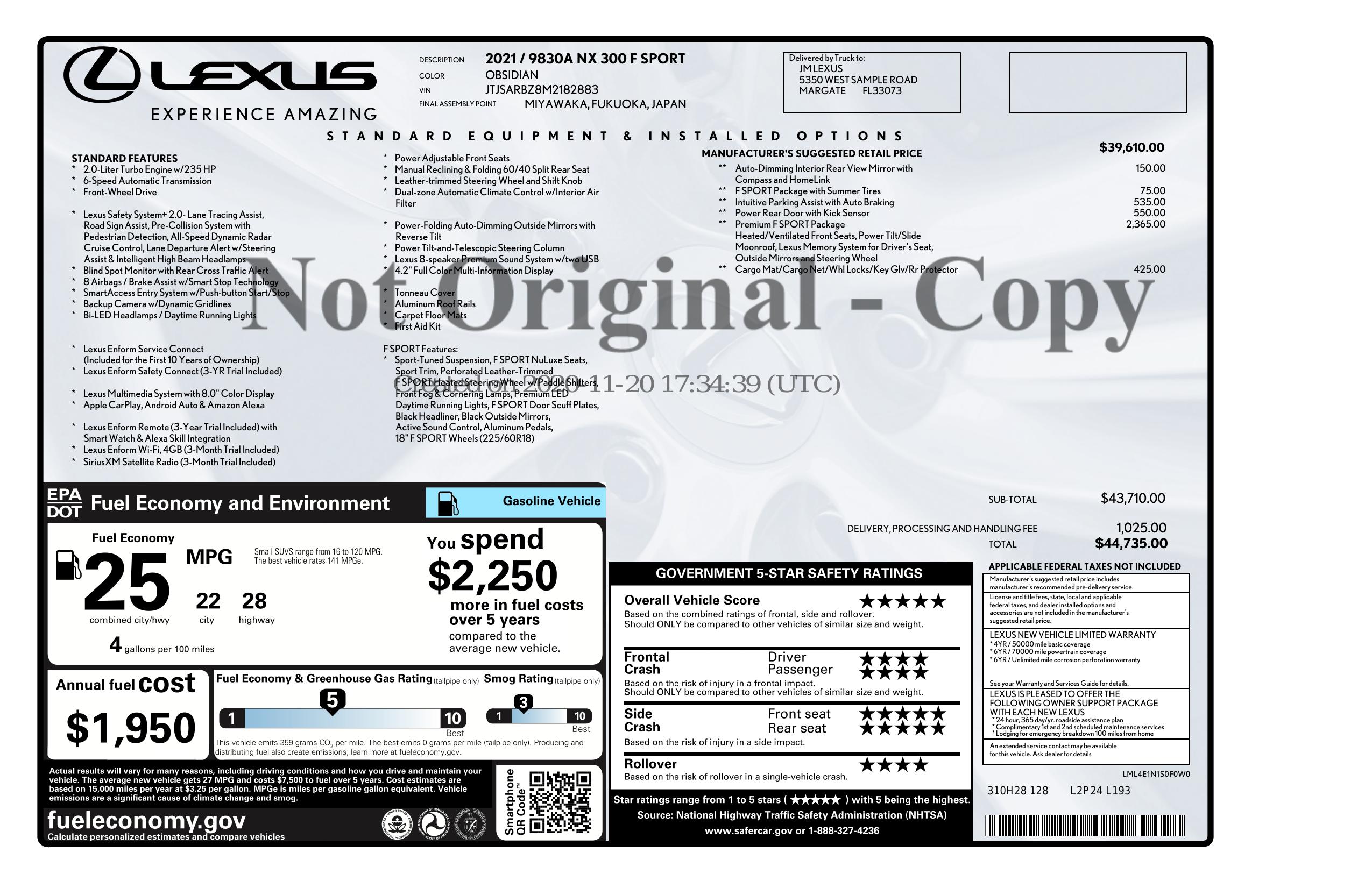 2021 Lexus Nx Nx 300 F Sport Fwd