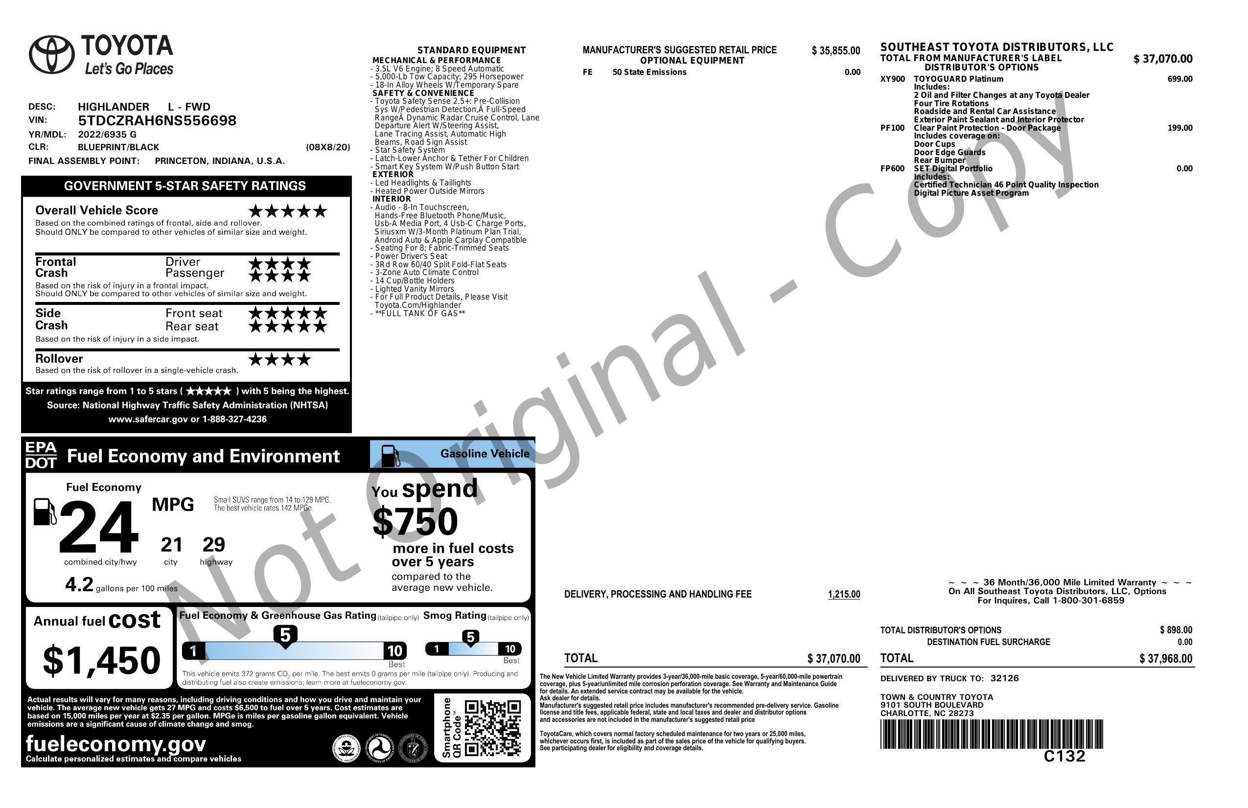 2022 Toyota Highlander L Fwd (Natl)