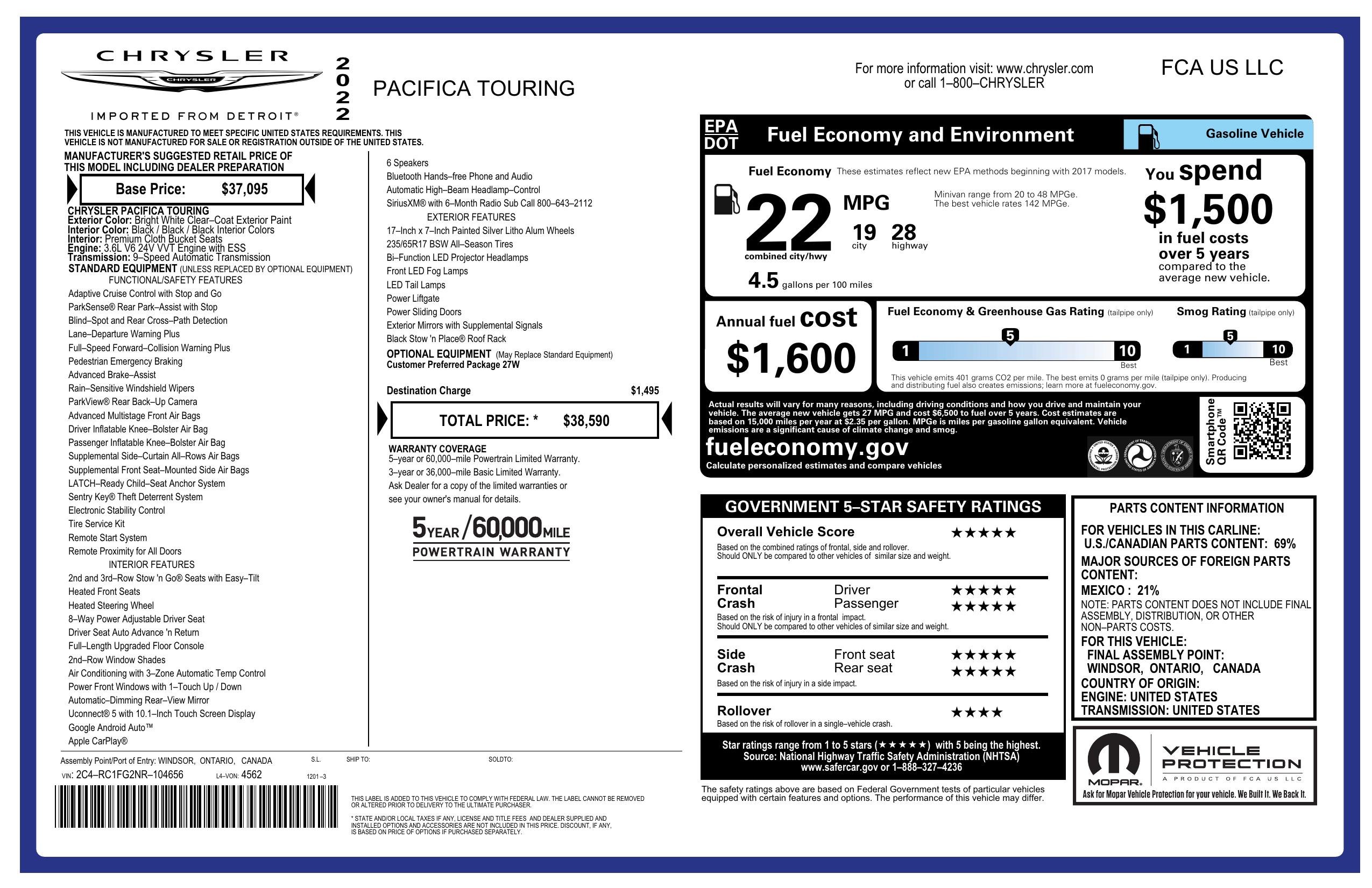 2022 Chrysler Pacifica Touring Fwd