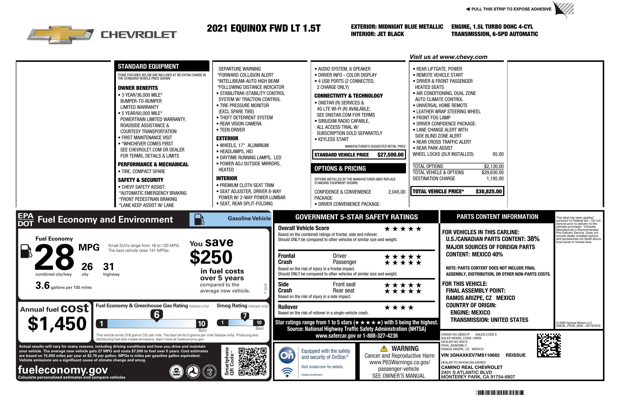 2021 Chevrolet Equinox Fwd 4dr Lt W/1 Lt