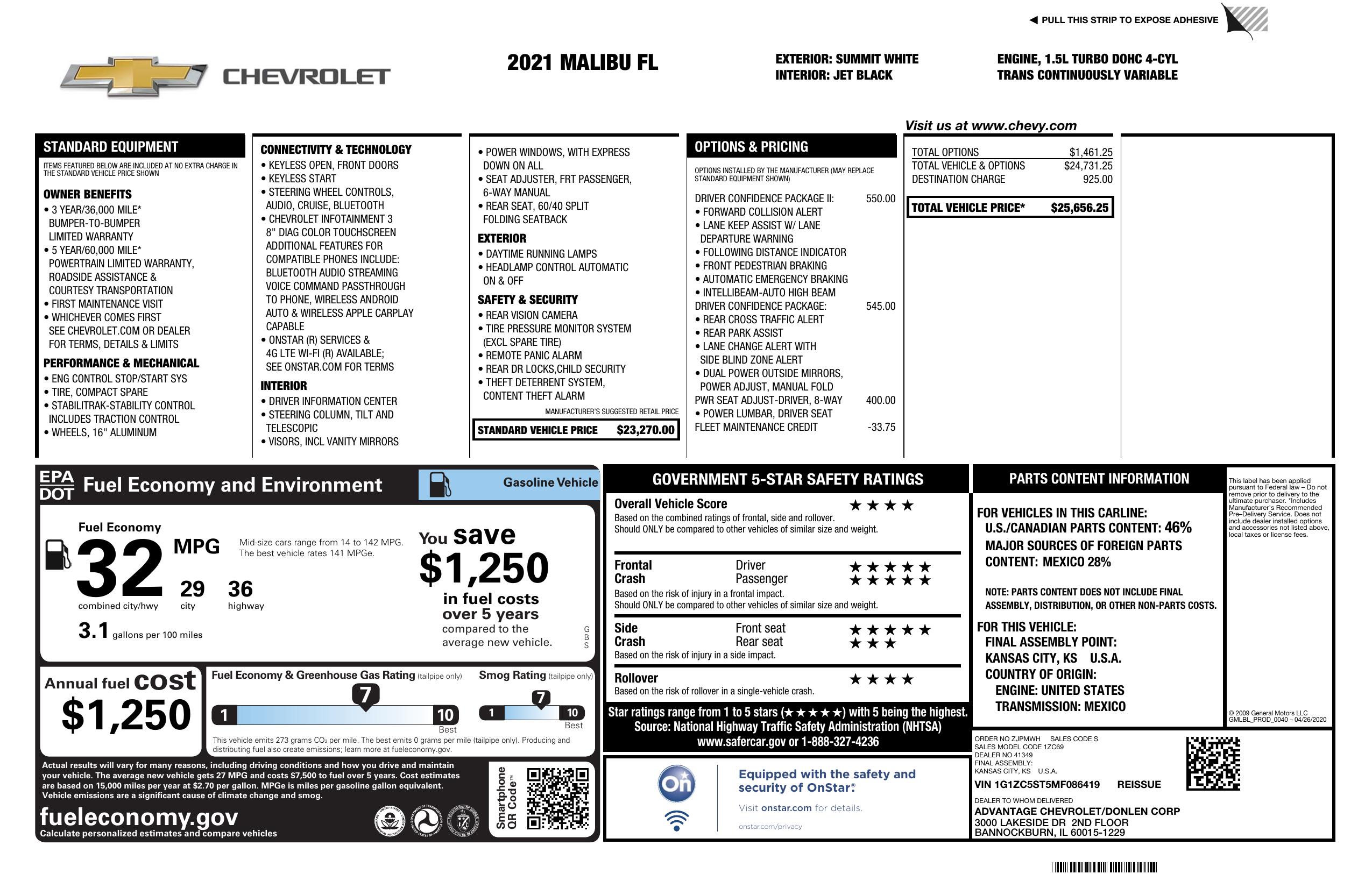 2021 Chevrolet Malibu 4dr Sdn Ls W/1 Fl