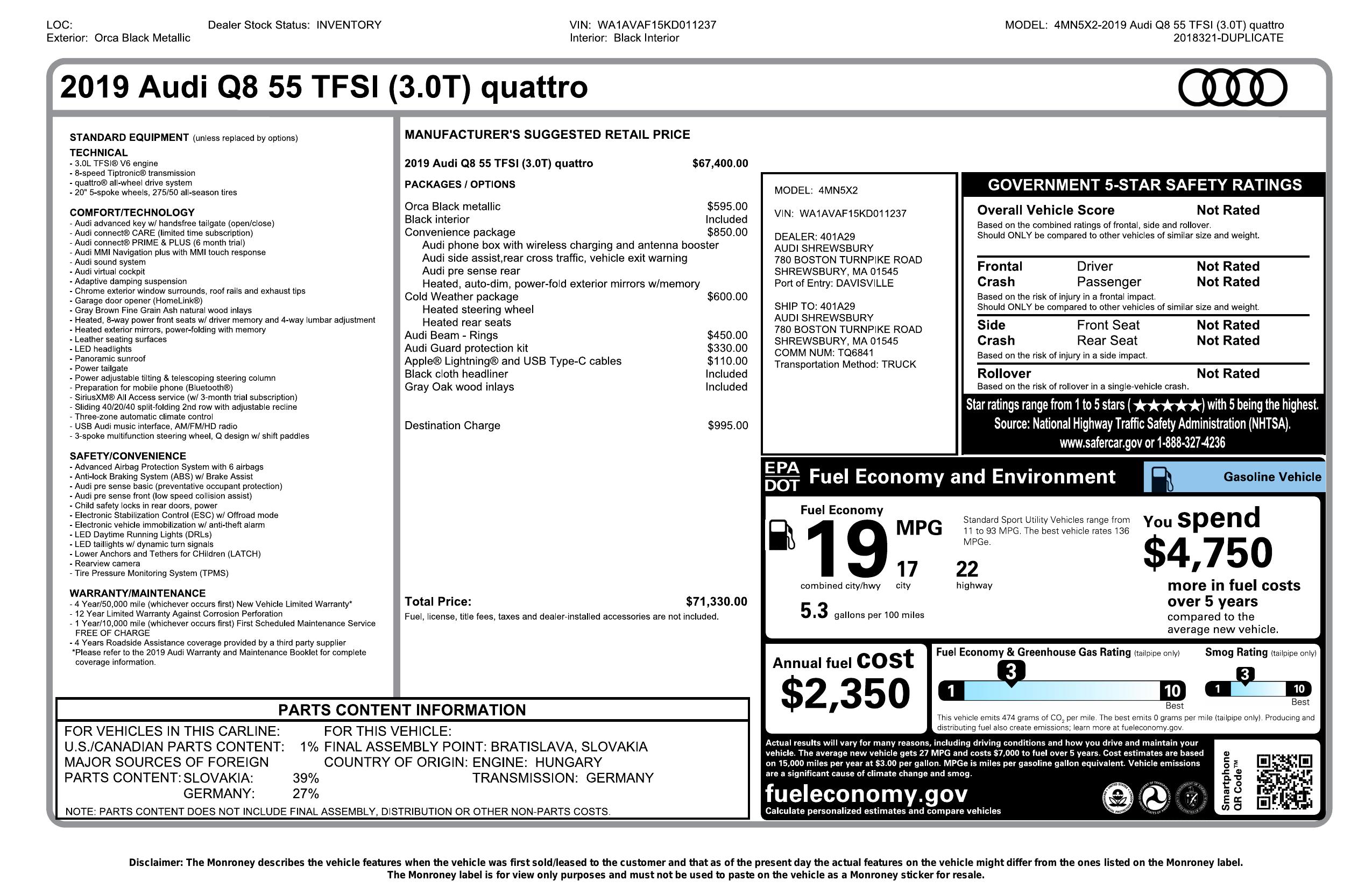 2019 Audi Q8 Premium 55 Tfsi Quattro