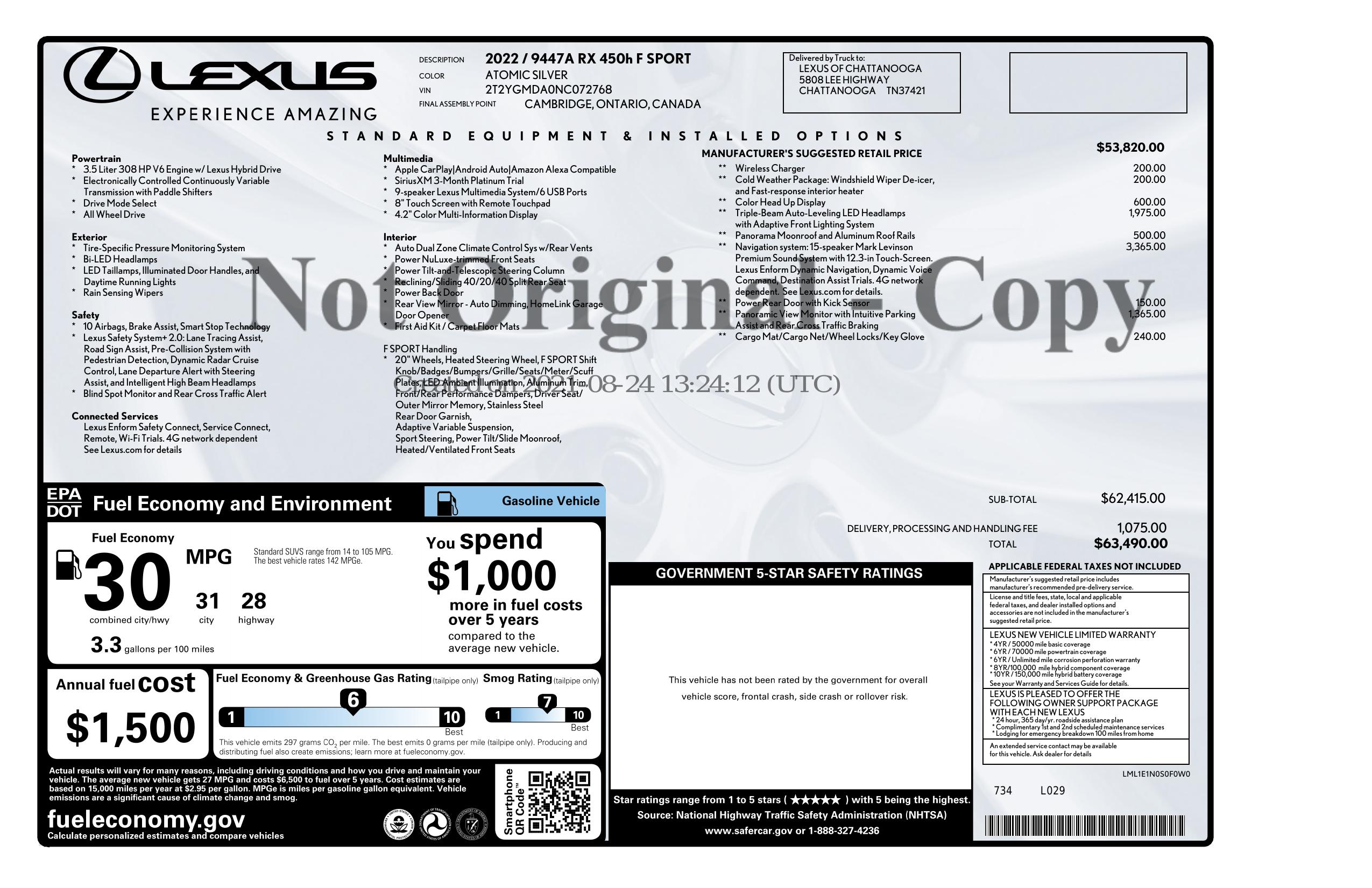 2022 Lexus Rx Rx 450h F Sport Handling Awd
