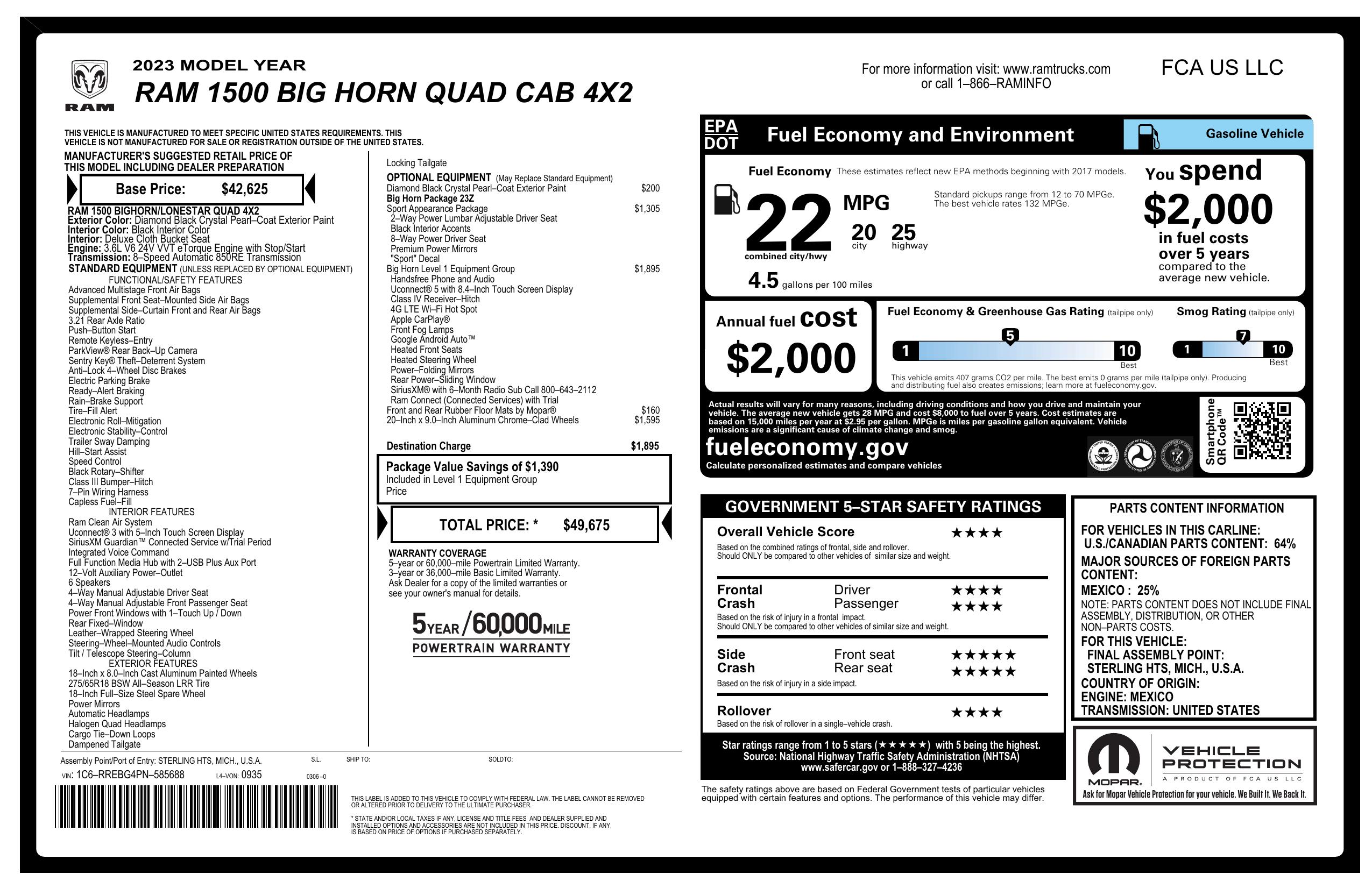 2023 Ram 1500 Big Horn 4x2 Quad Cab 6'4" Box