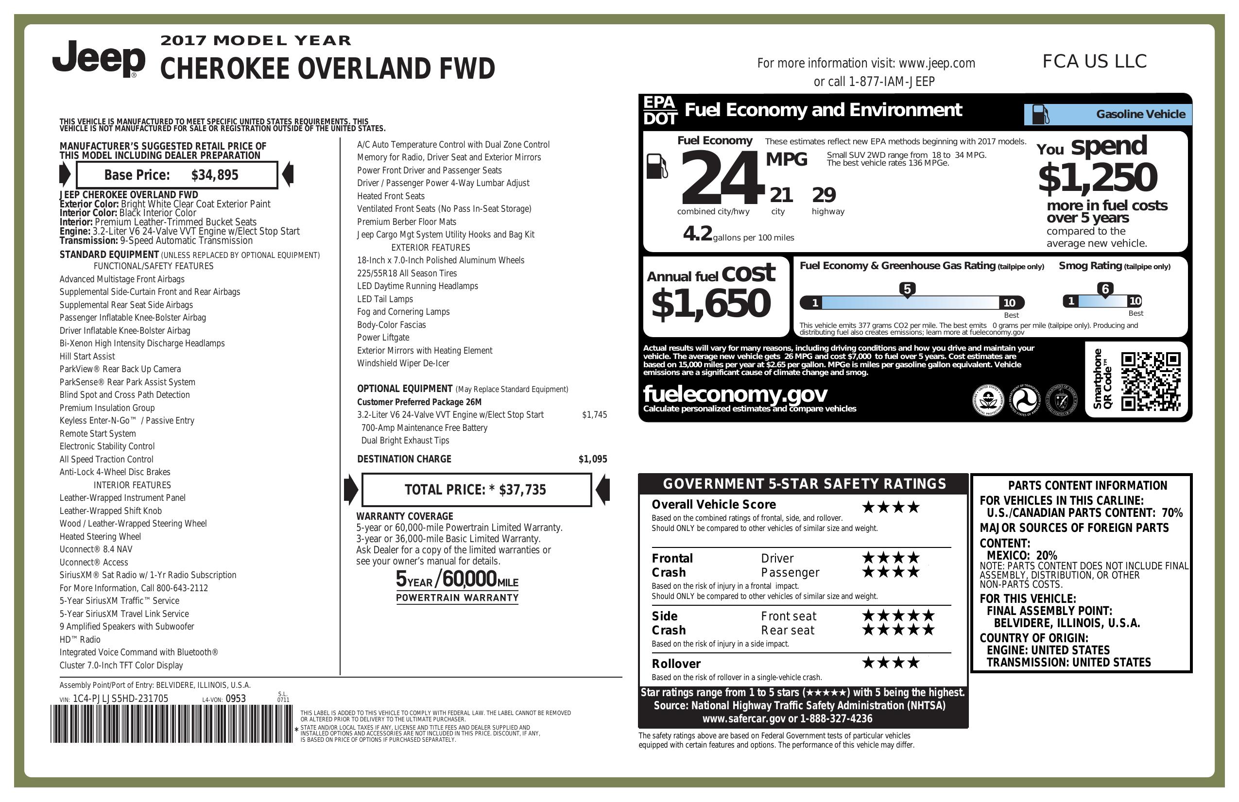 2017 Jeep Cherokee Overland Fwd
