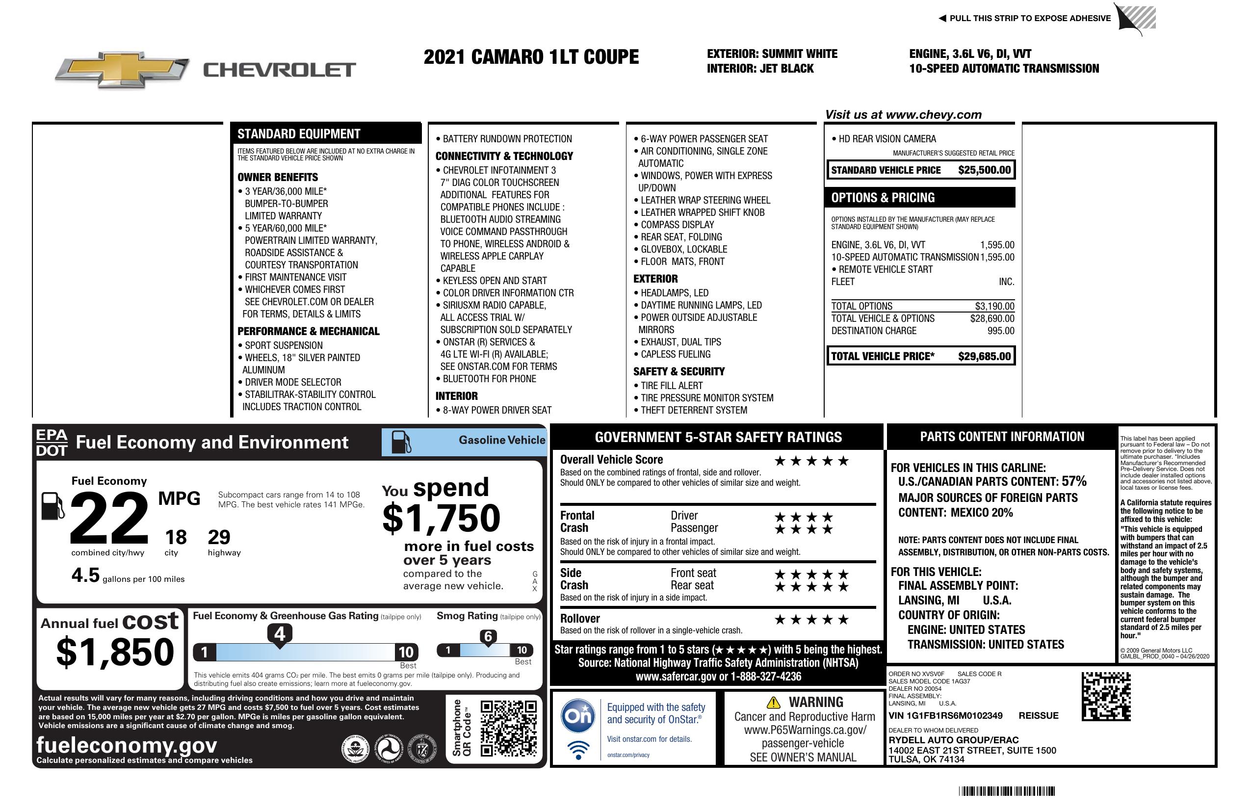 2021 Chevrolet Camaro 2dr Cpe 1 Lt