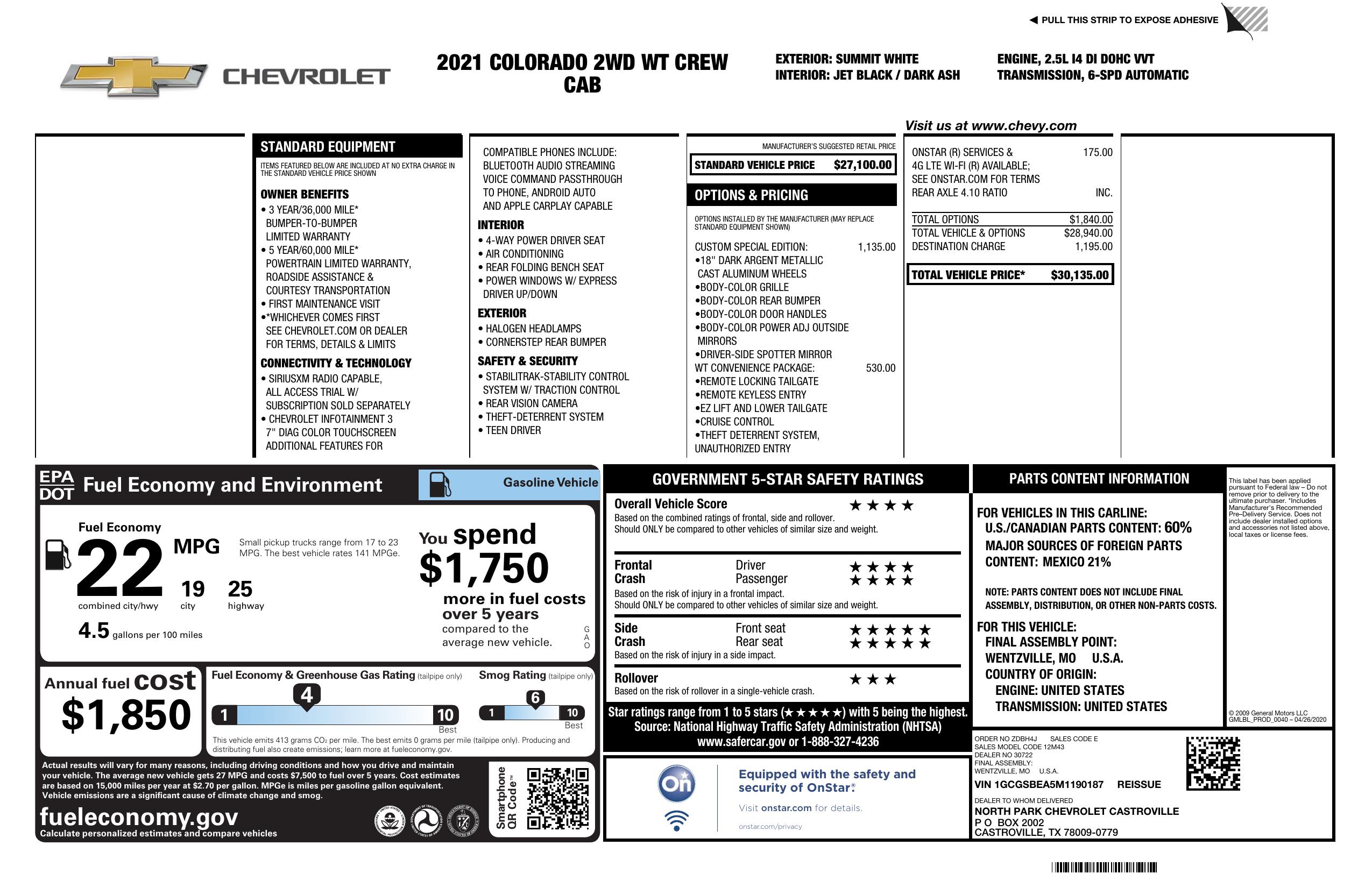 2021 Chevrolet Colorado 2 Wd Crew Cab 128" Work Truck