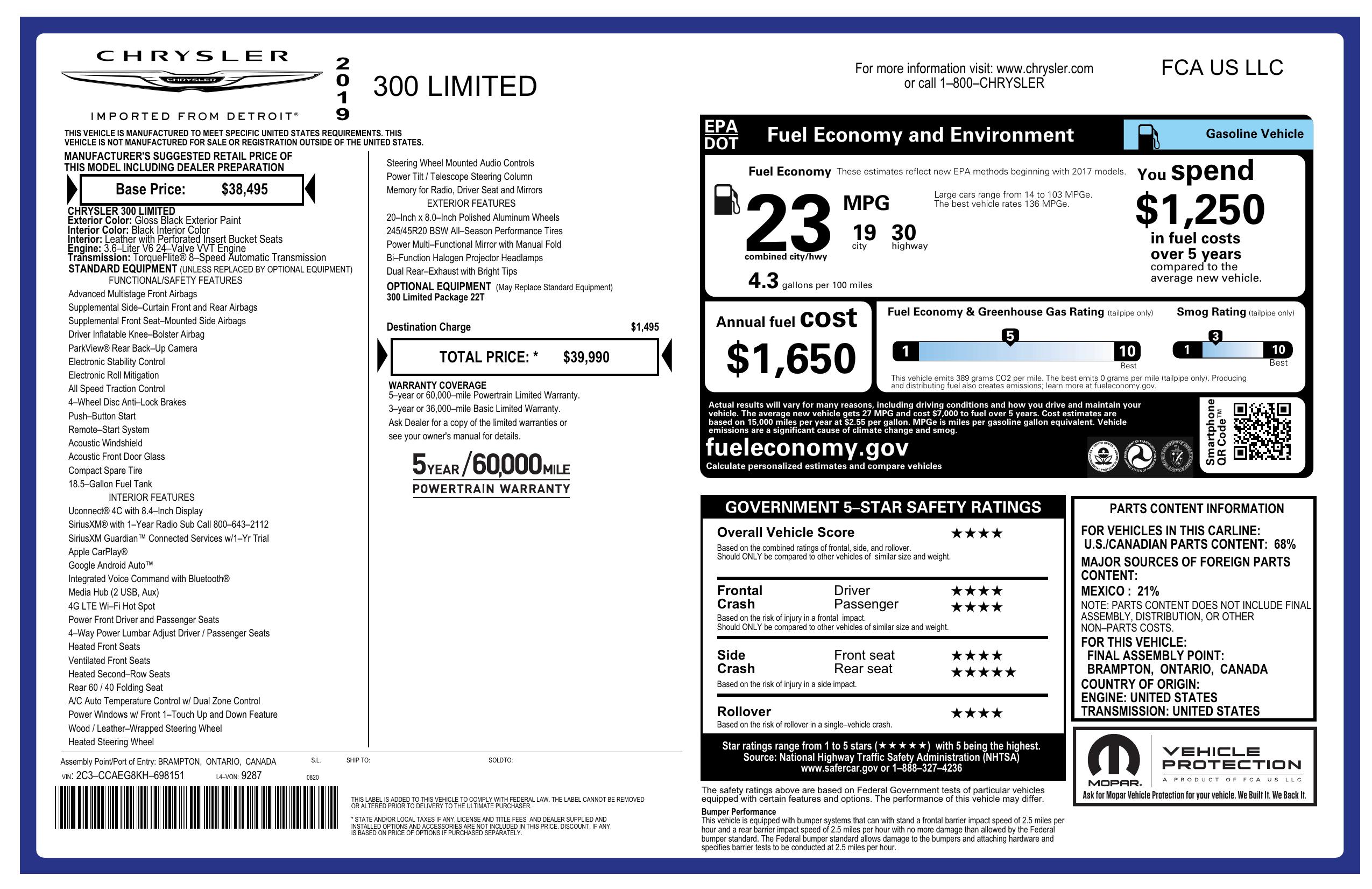 2019 Chrysler 300 Limited Rwd