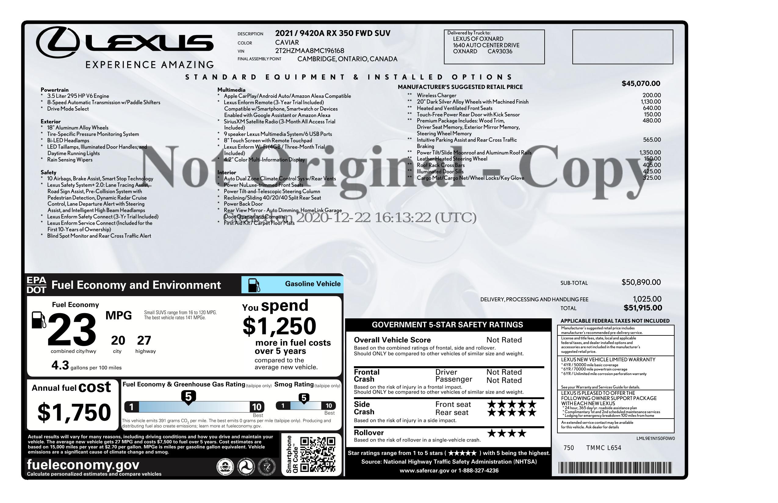 2021 Lexus Rx Rx 350 Fwd