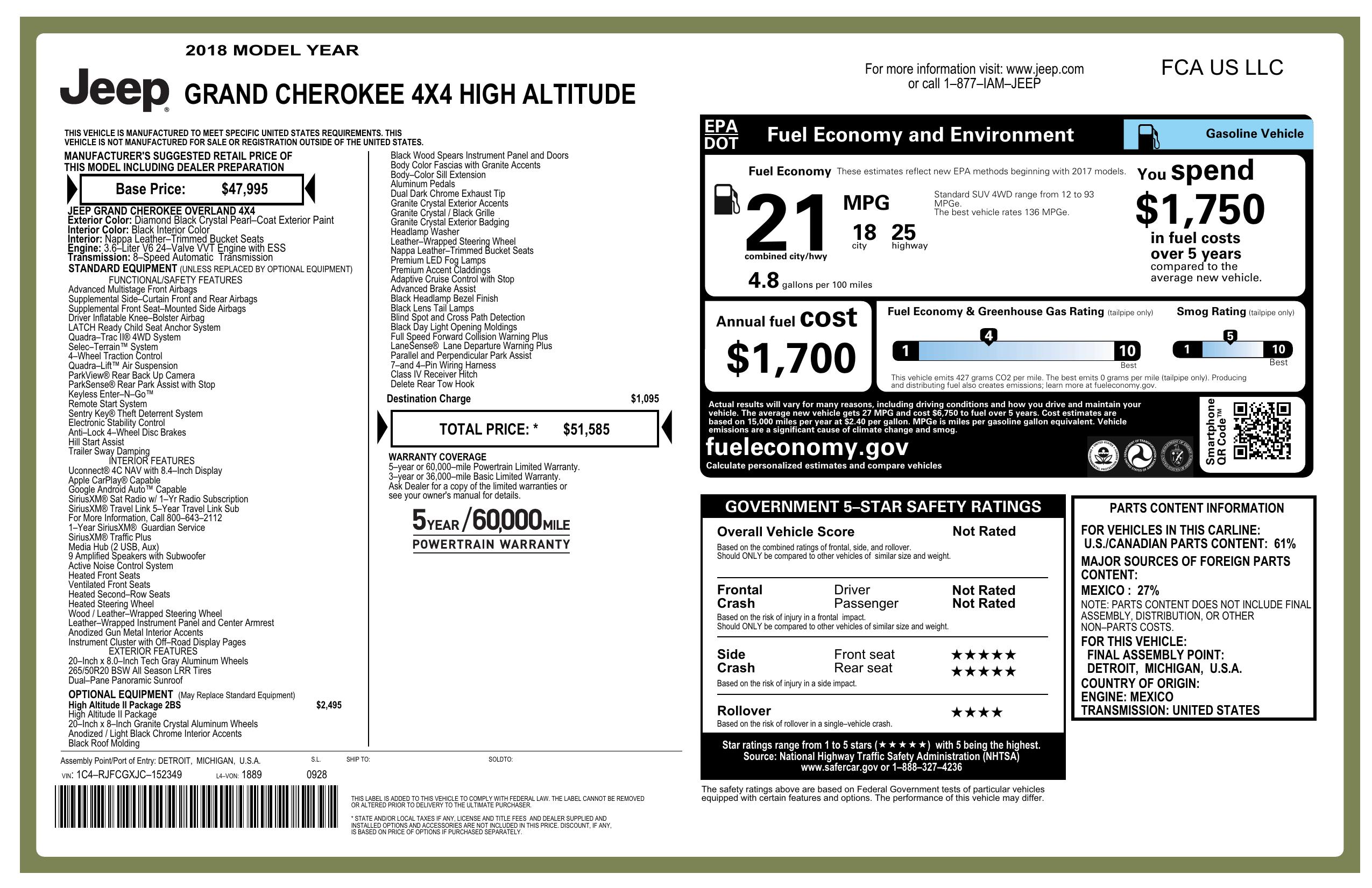 2018 Jeep Grand Cherokee High Altitude 4x4 *Ltd Avail*