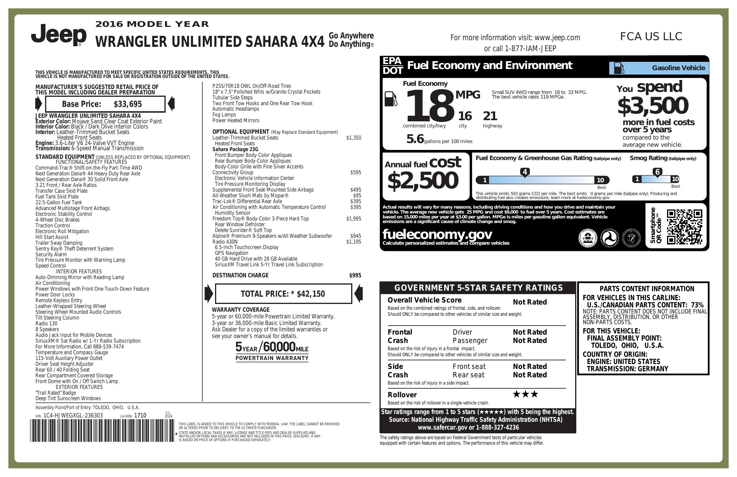 2016 Jeep Wrangler Unlimited 4 Wd 4dr Sahara