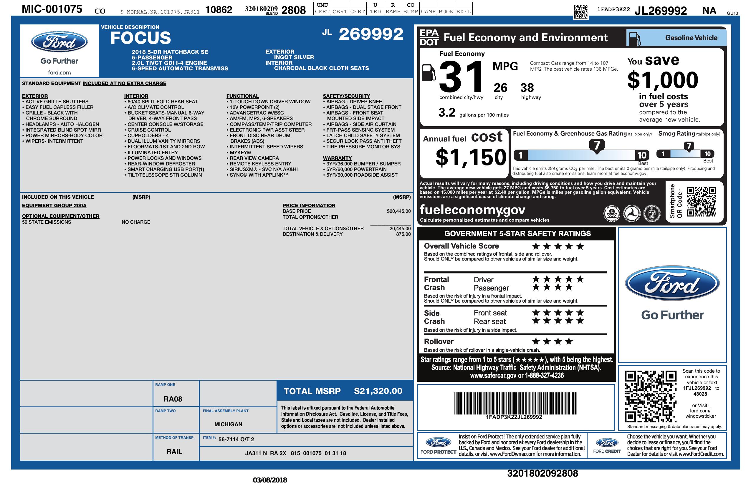2018 Ford Focus Se Hatch