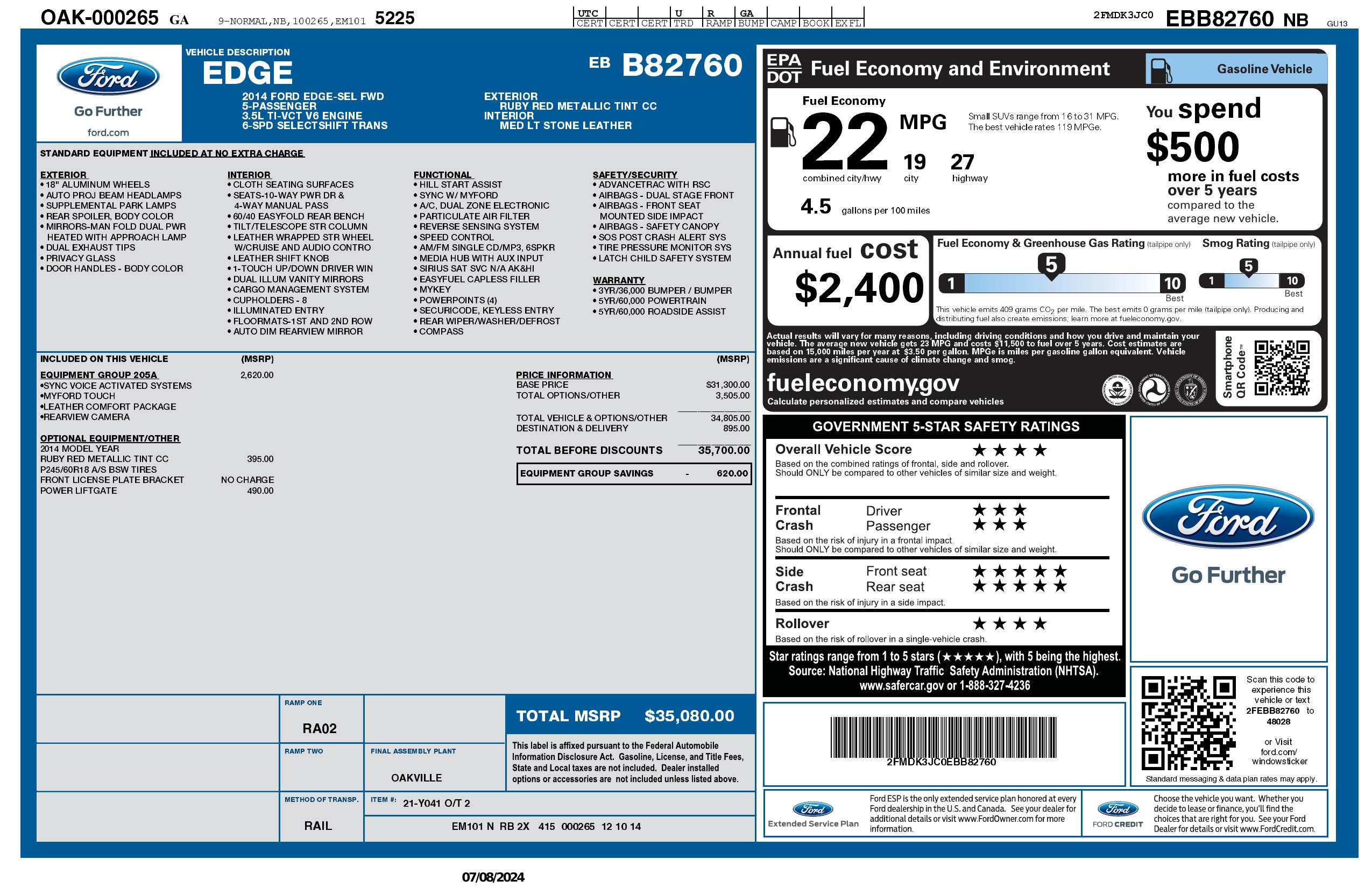 2014 Ford Edge 4dr Sel Fwd