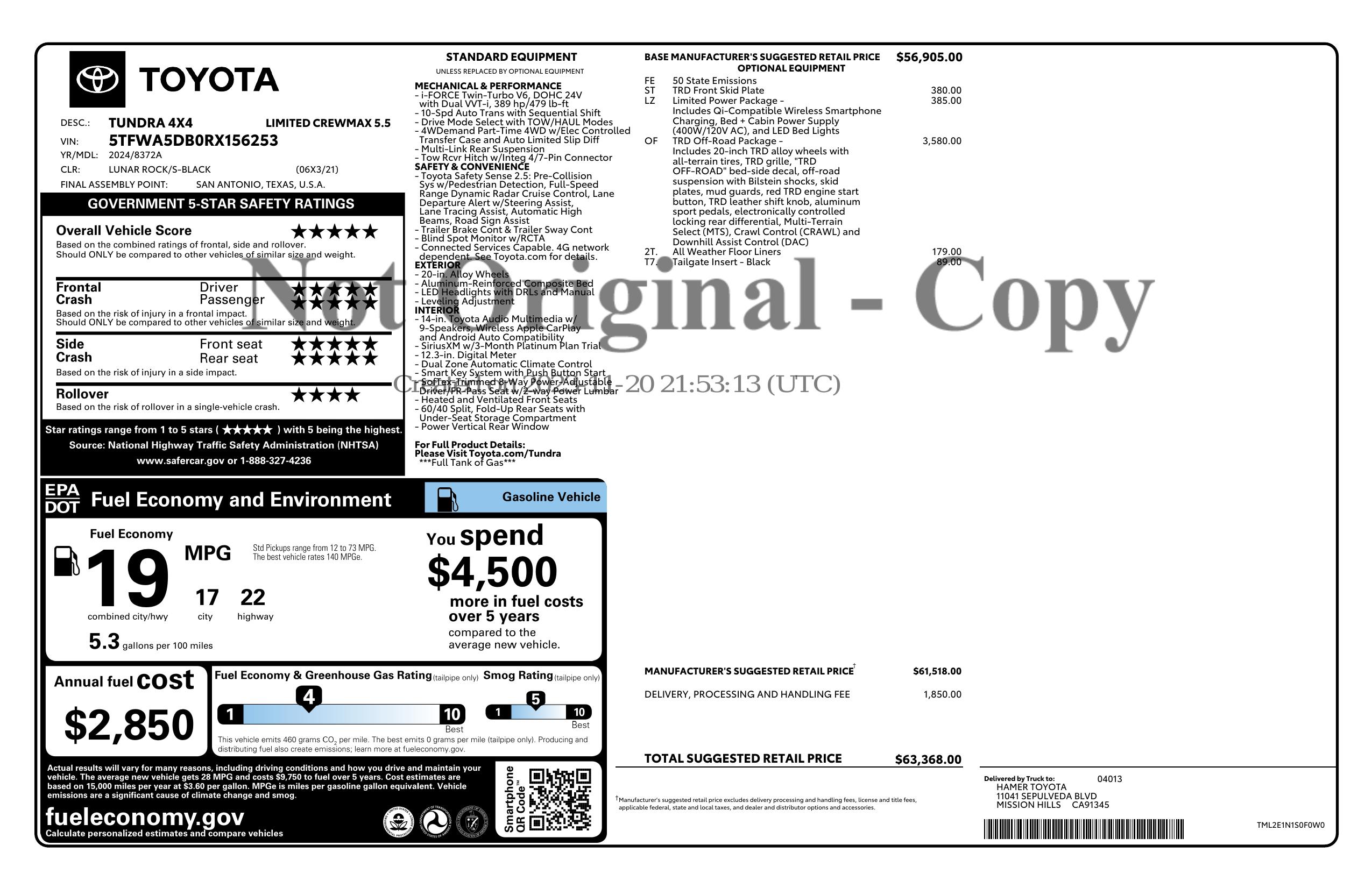 2024 Toyota Tundra 4 Wd Crew Max 5.5' Bed (Natl)