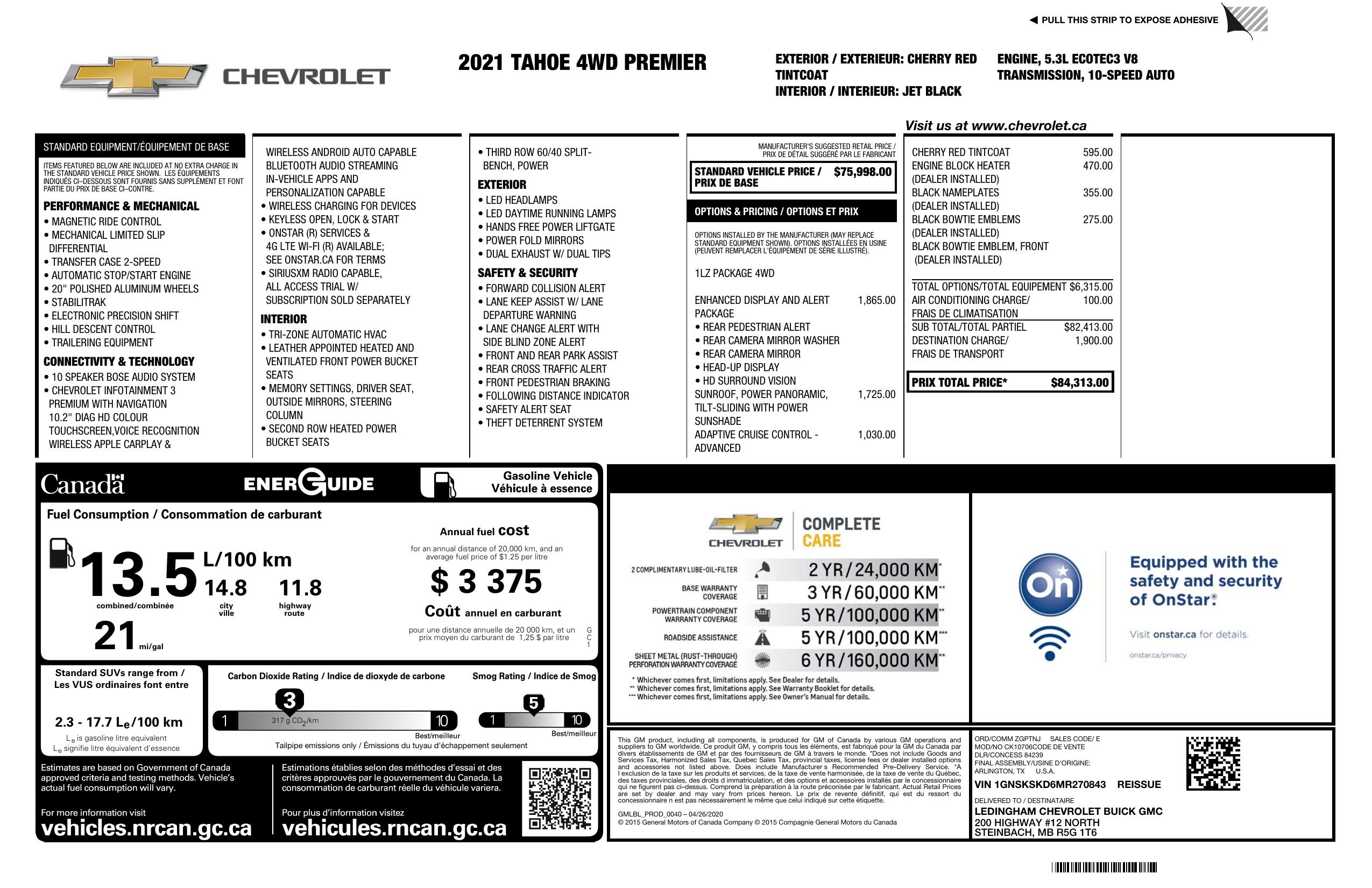 2021 Chevrolet Tahoe 4 Wd 4dr Premier