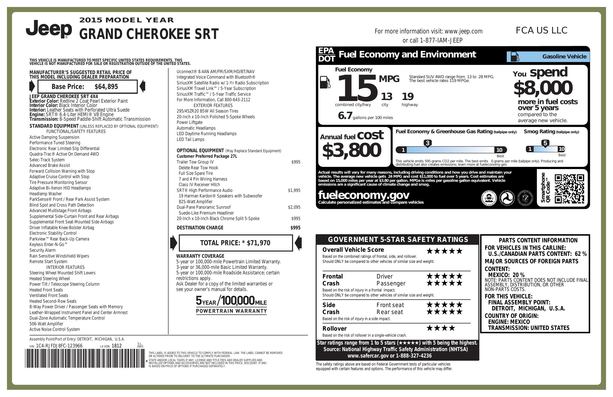2015 Jeep Grand Cherokee 4 Wd 4dr Srt
