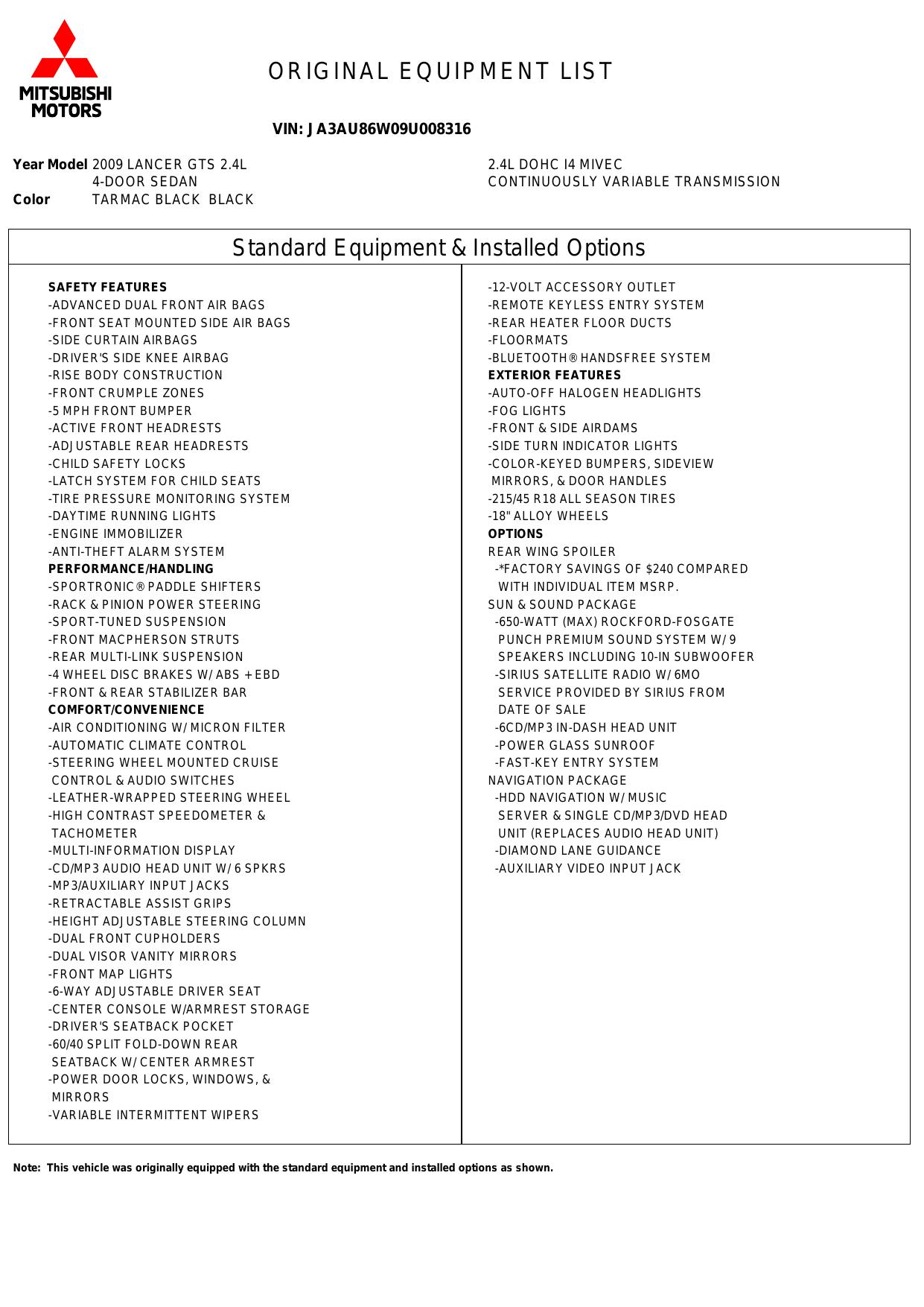 2009 Mitsubishi Lancer 4dr Sdn Gts