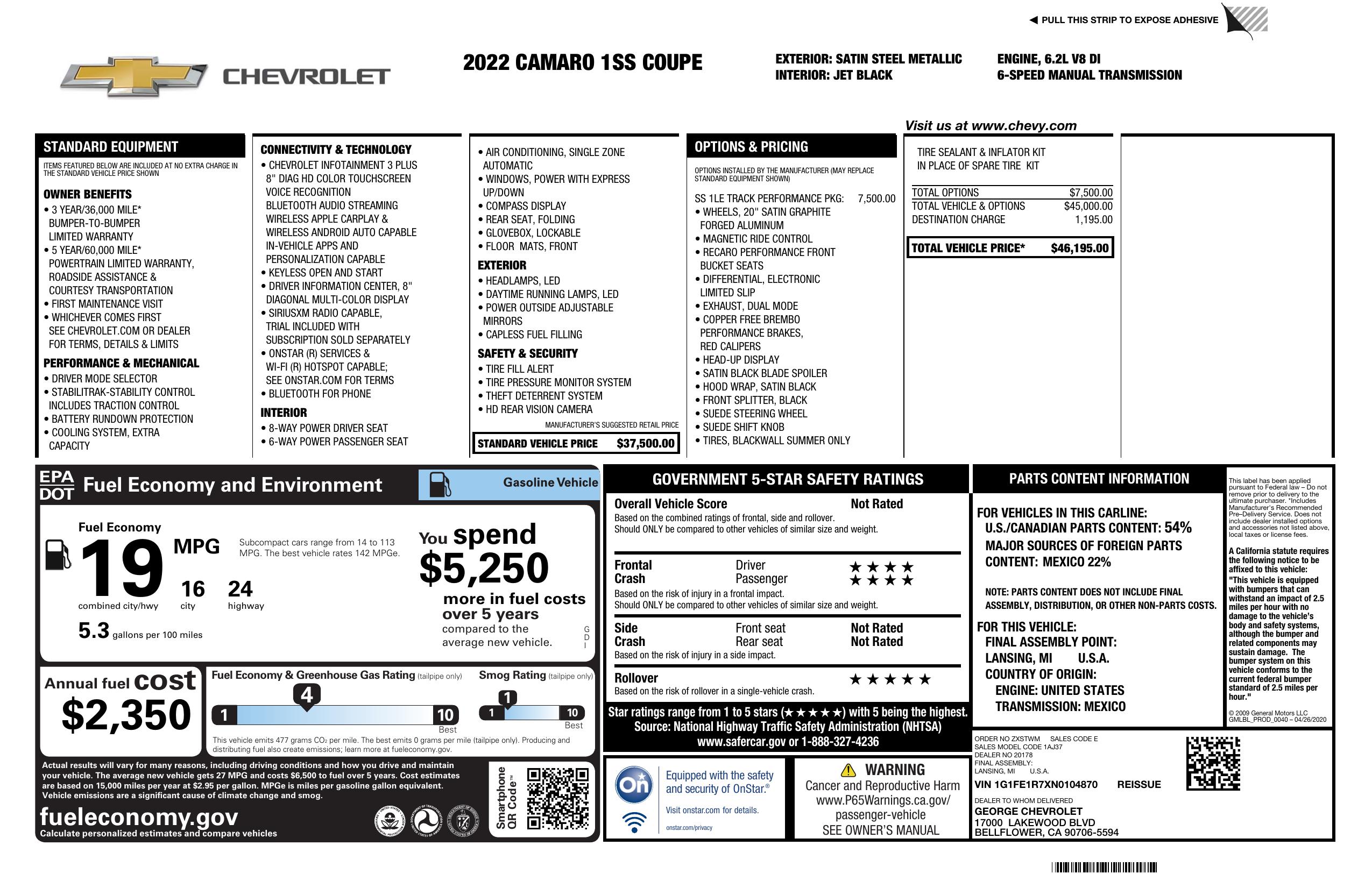 2022 Chevrolet Camaro 2dr Cpe 1 Ss
