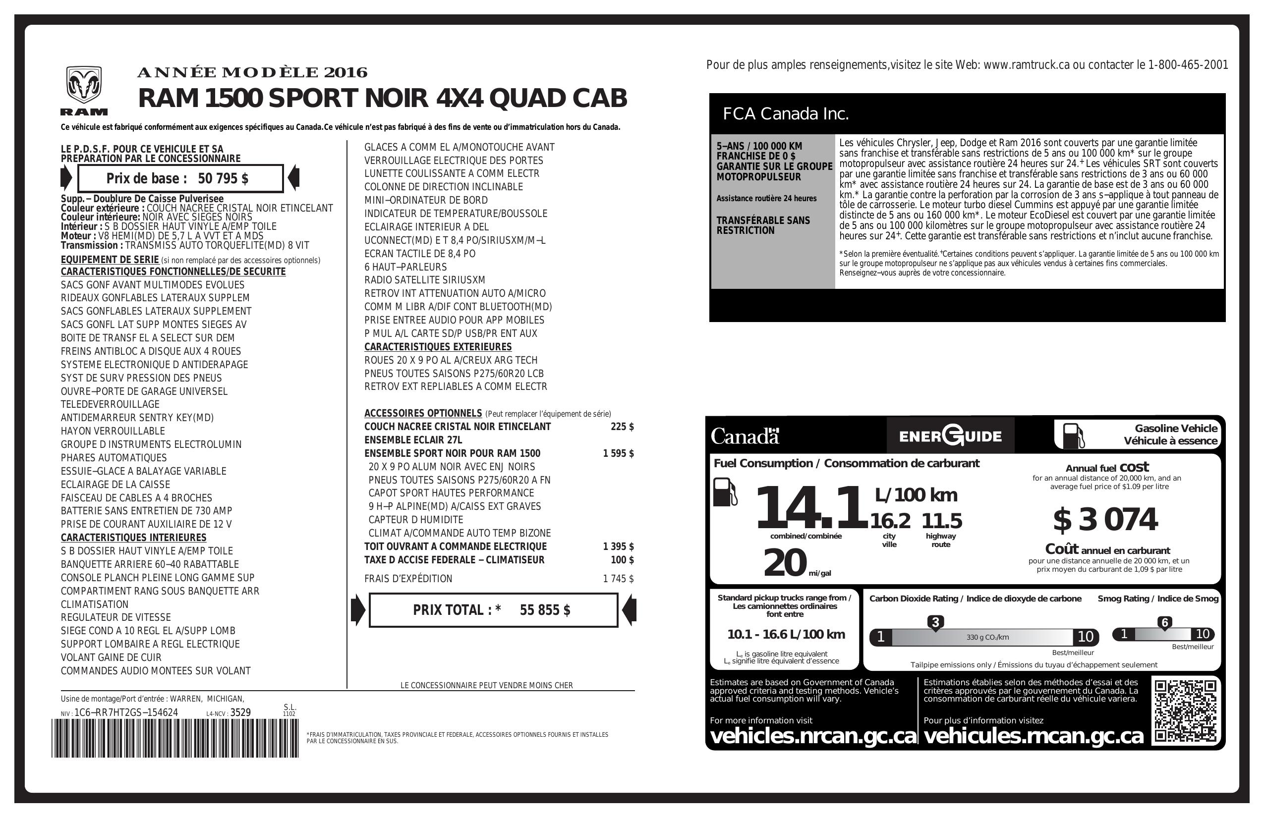 2016 Ram 1500 4 Wd Quad Cab 140.5" Sport