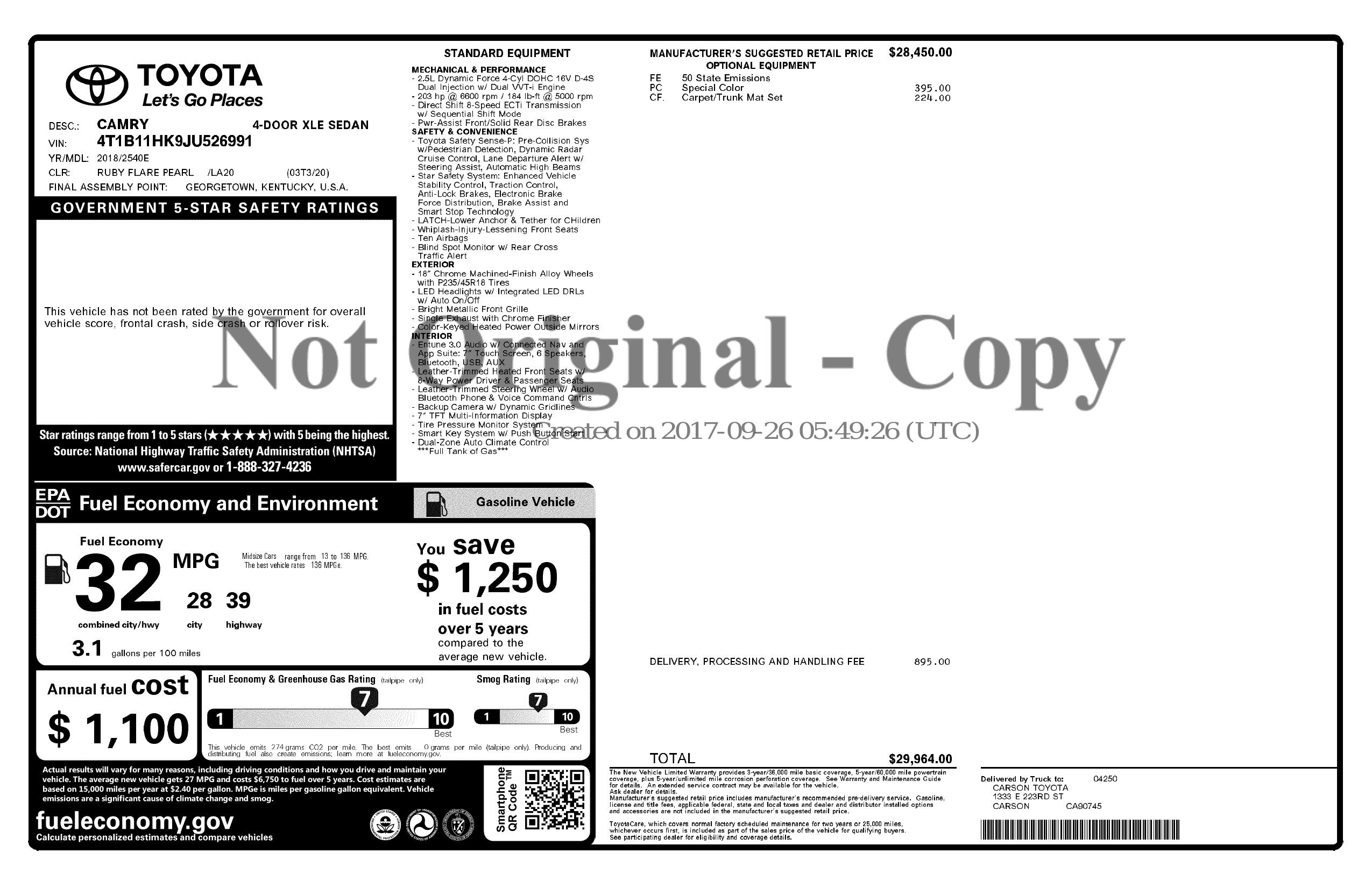 2018 Toyota Camry Auto (Natl)
