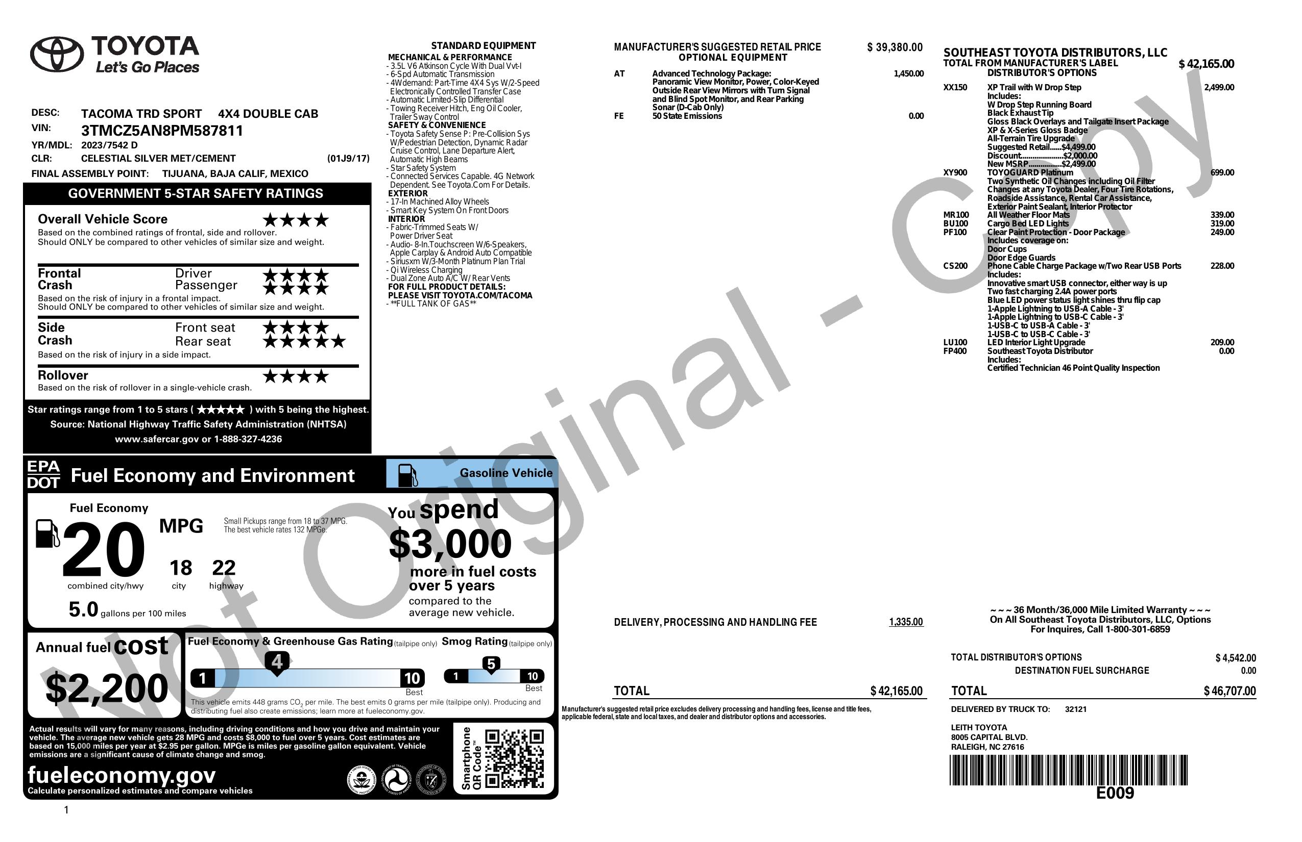 2023 Toyota Tacoma 4 Wd Double Cab 5' Bed V6 (Natl)