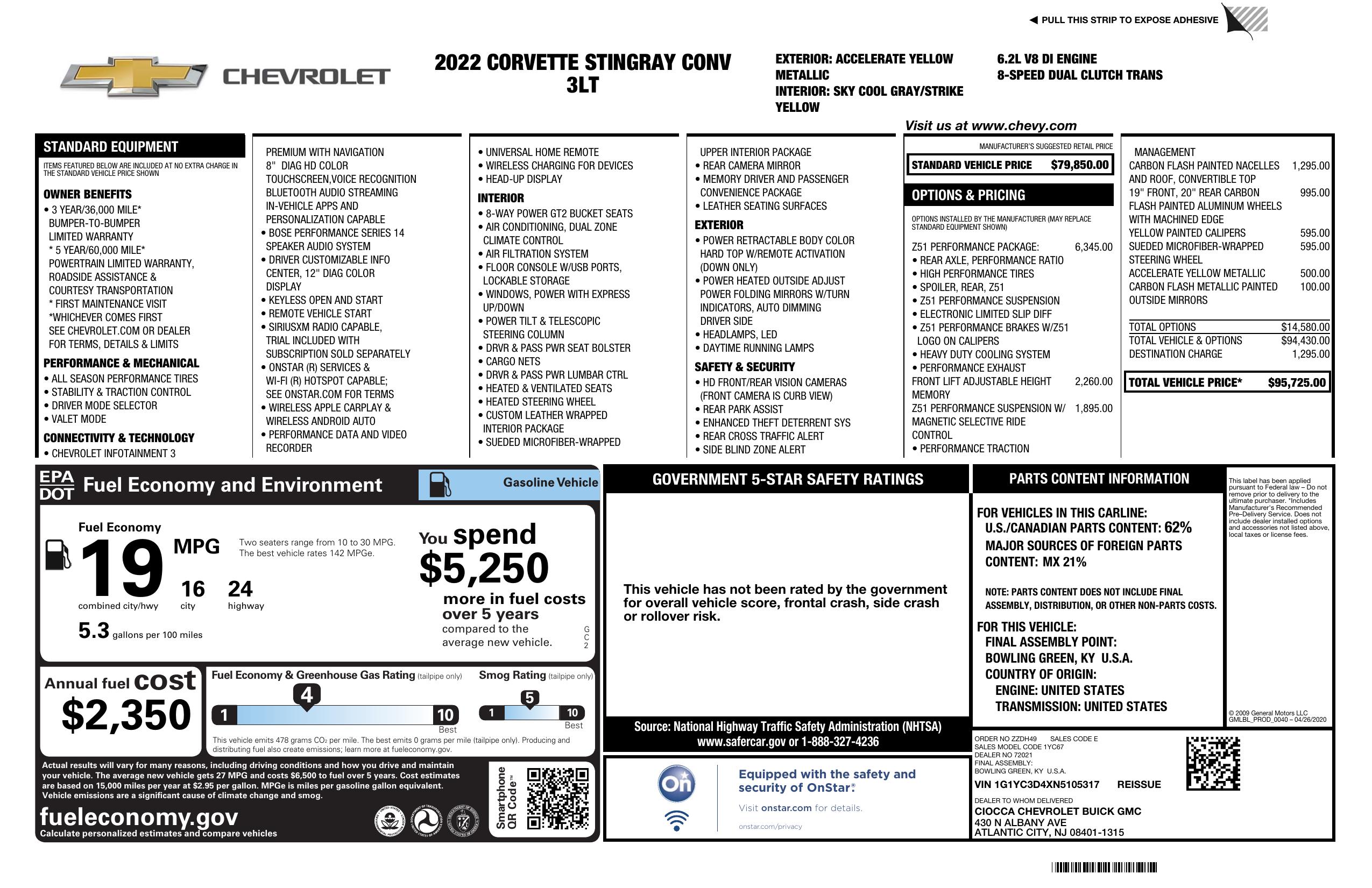 2022 Chevrolet Corvette 2dr Stingray Conv W/3 Lt