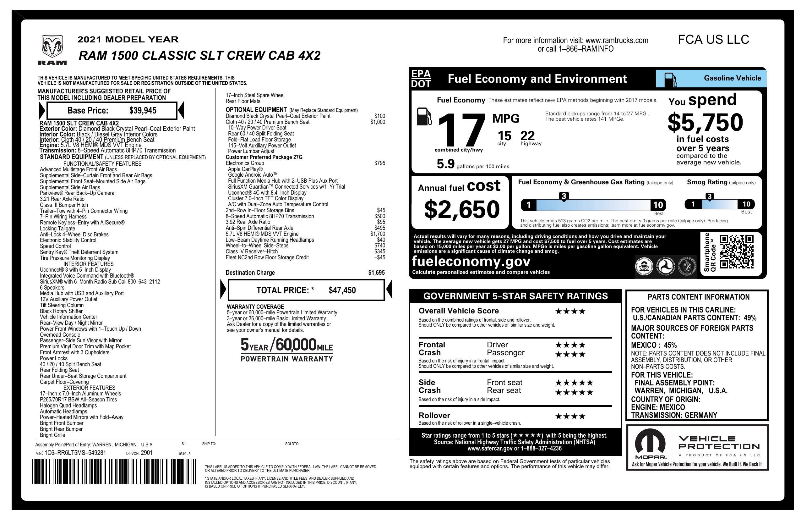 2021 Ram 1500 Classic Slt 4x2 Crew Cab 5'7" Box