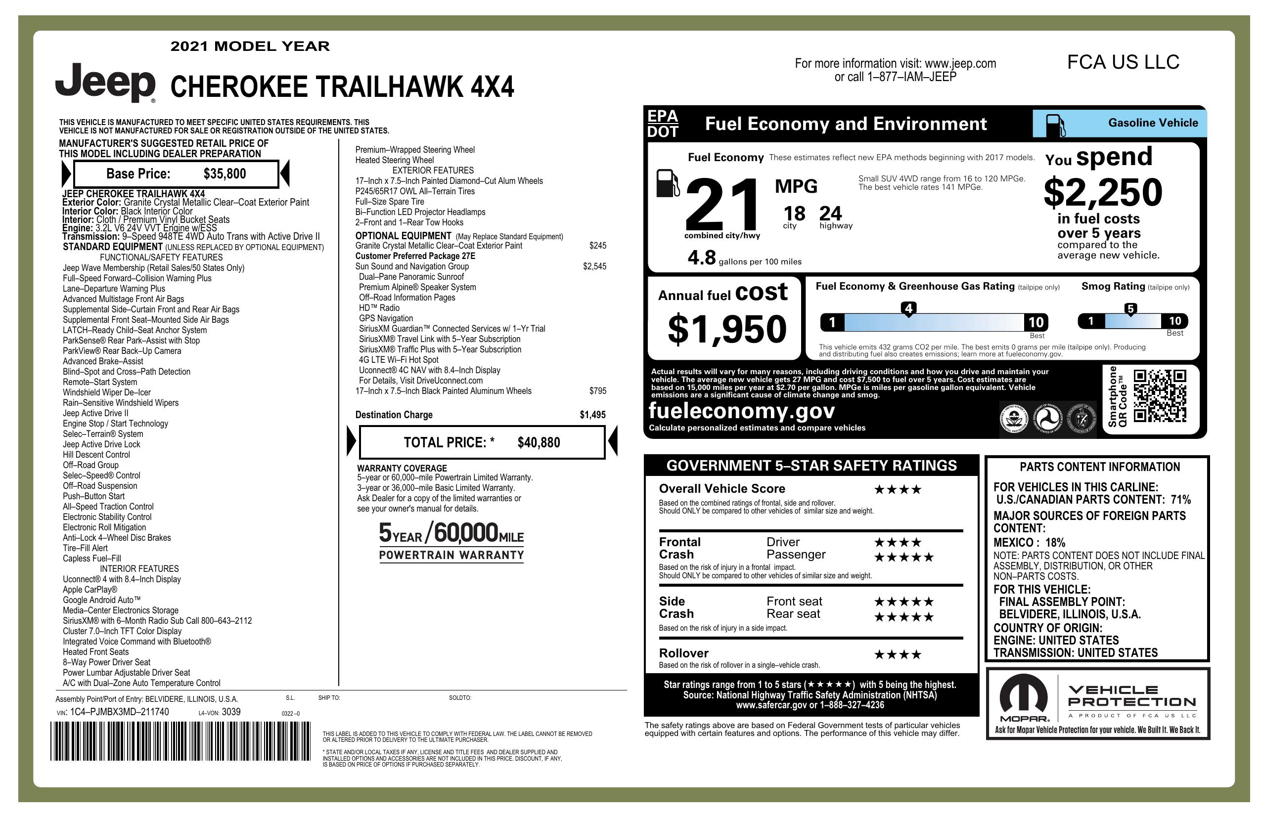 2021 Jeep Cherokee Trailhawk 4x4