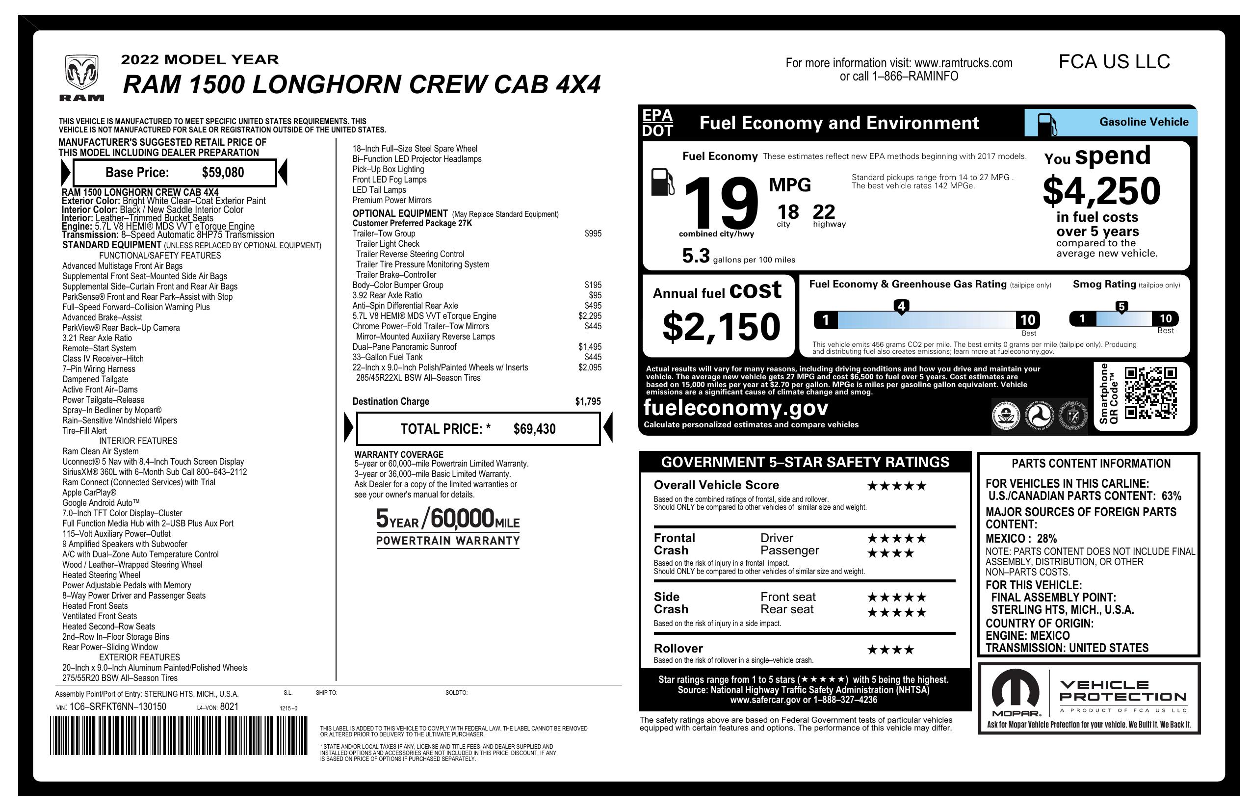 2022 Ram 1500 Longhorn 4x4 Crew Cab 5'7" Box