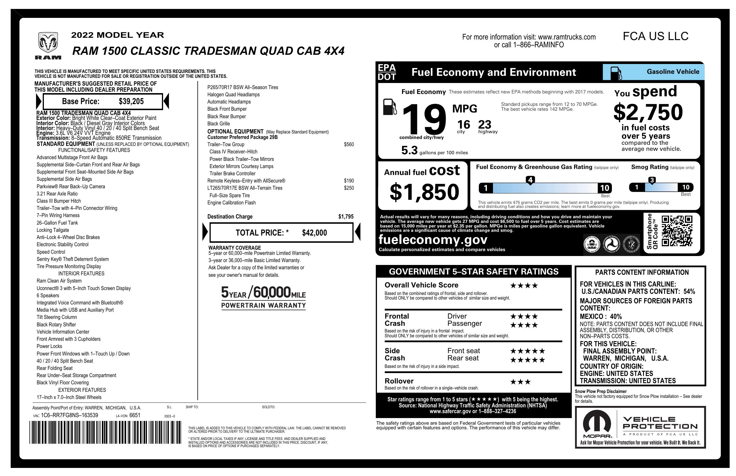 2022 Ram 1500 Classic Tradesman 4x4 Quad Cab 6'4" Box
