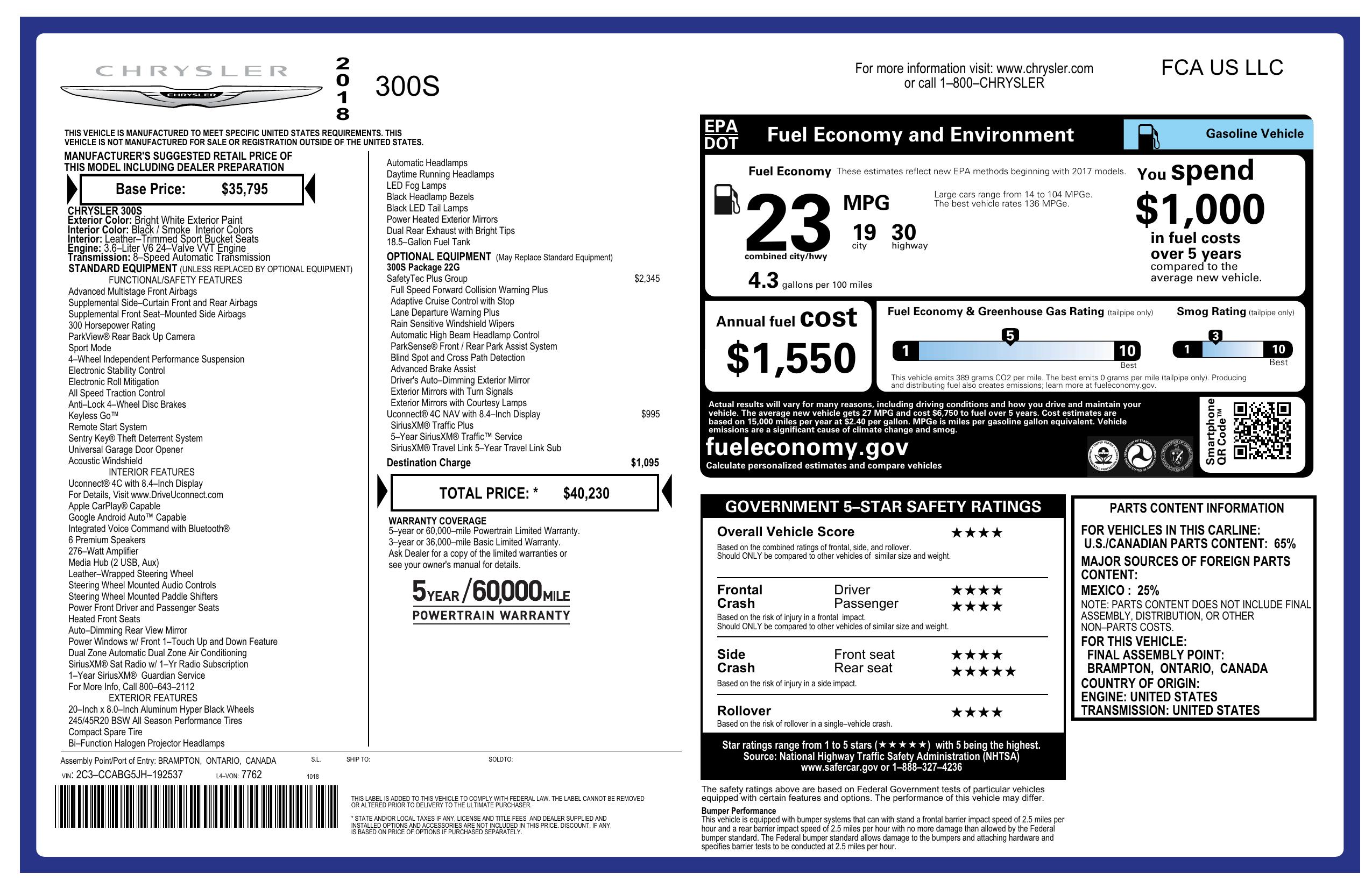 2018 Chrysler 300 300 S Rwd