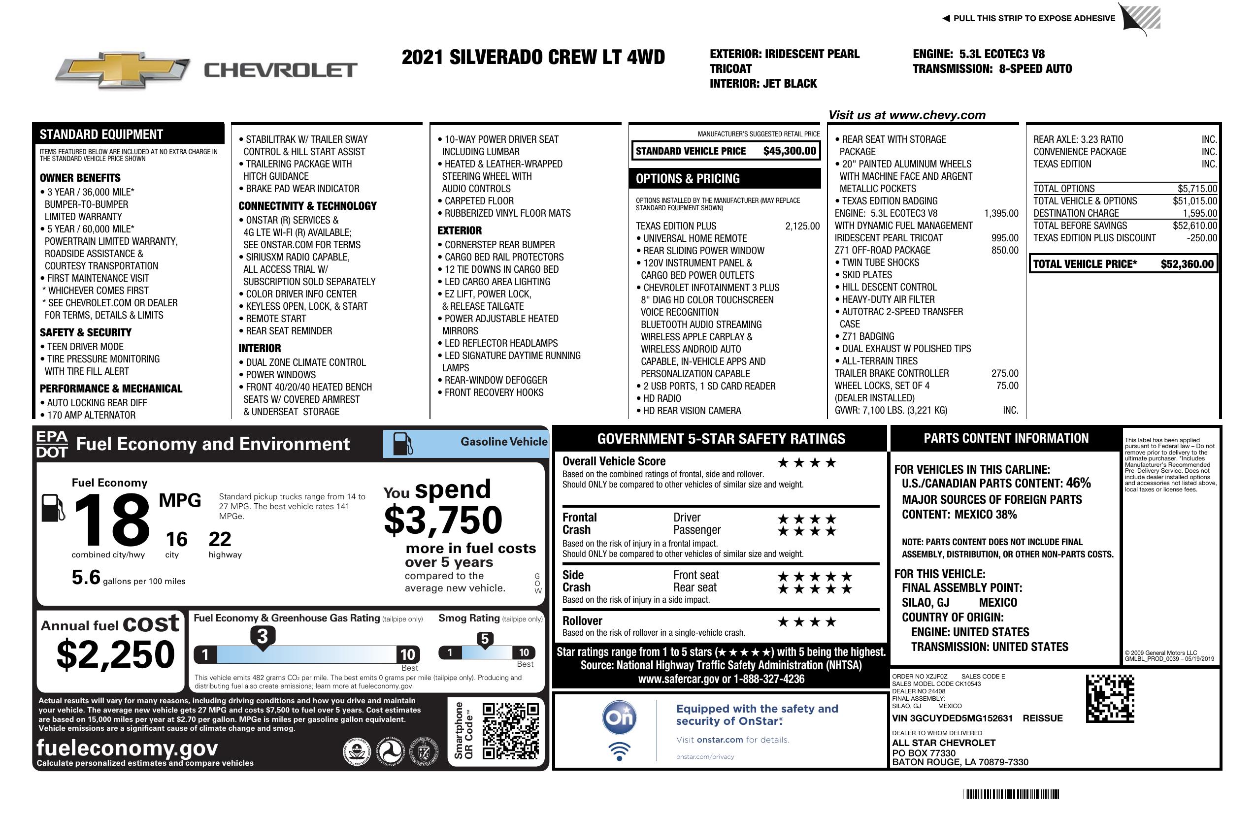 2021 Chevrolet Silverado 1500 4 Wd Crew Cab 147" Lt W/1 Lt
