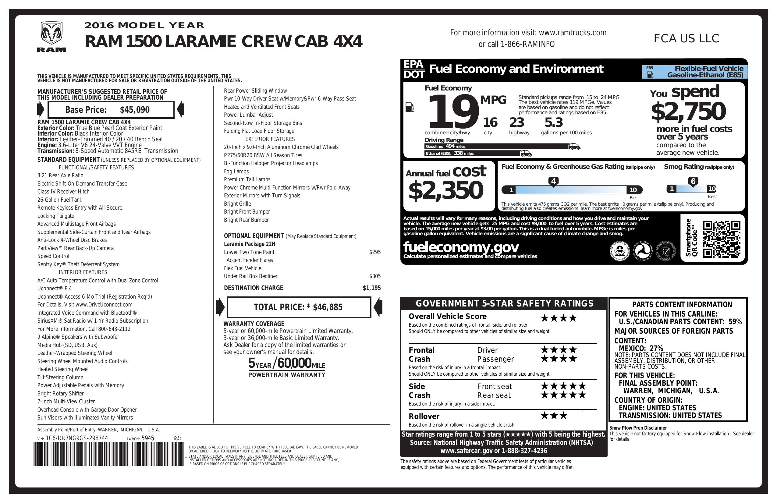 2016 Ram 1500 4 Wd Crew Cab 140.5" Laramie
