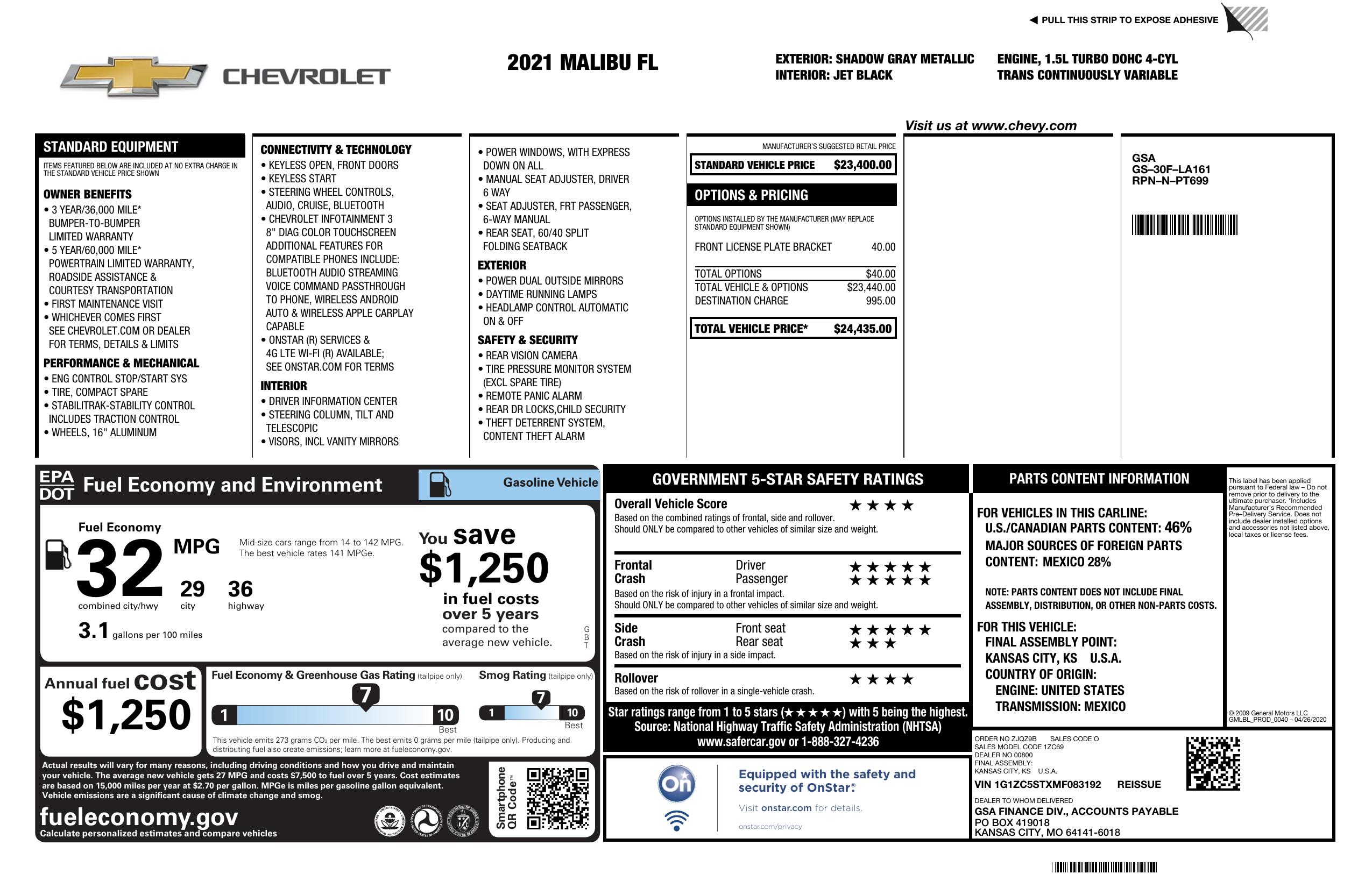 2021 Chevrolet Malibu 4dr Sdn Ls W/1 Fl