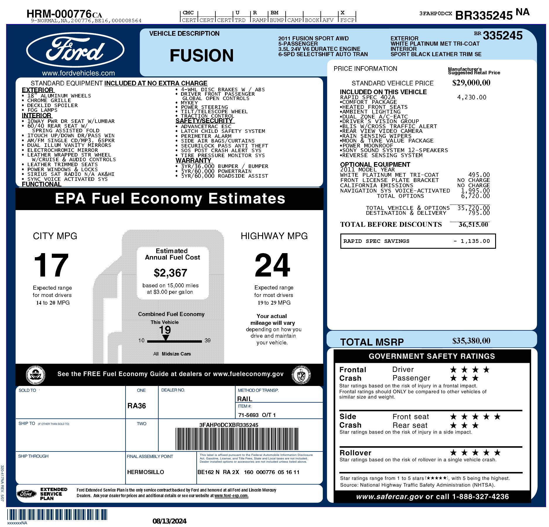 2011 Ford Fusion 4dr Sdn Sport Awd