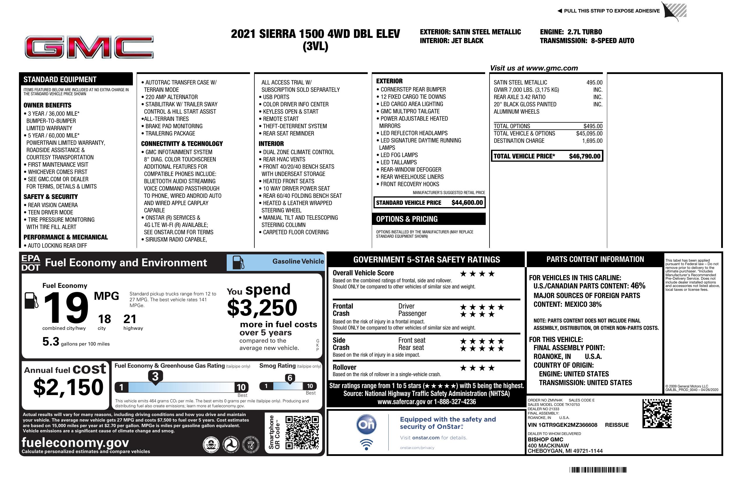 2021 GMC Sierra 1500 4 Wd Double Cab 147" Elevation W/3 Vl