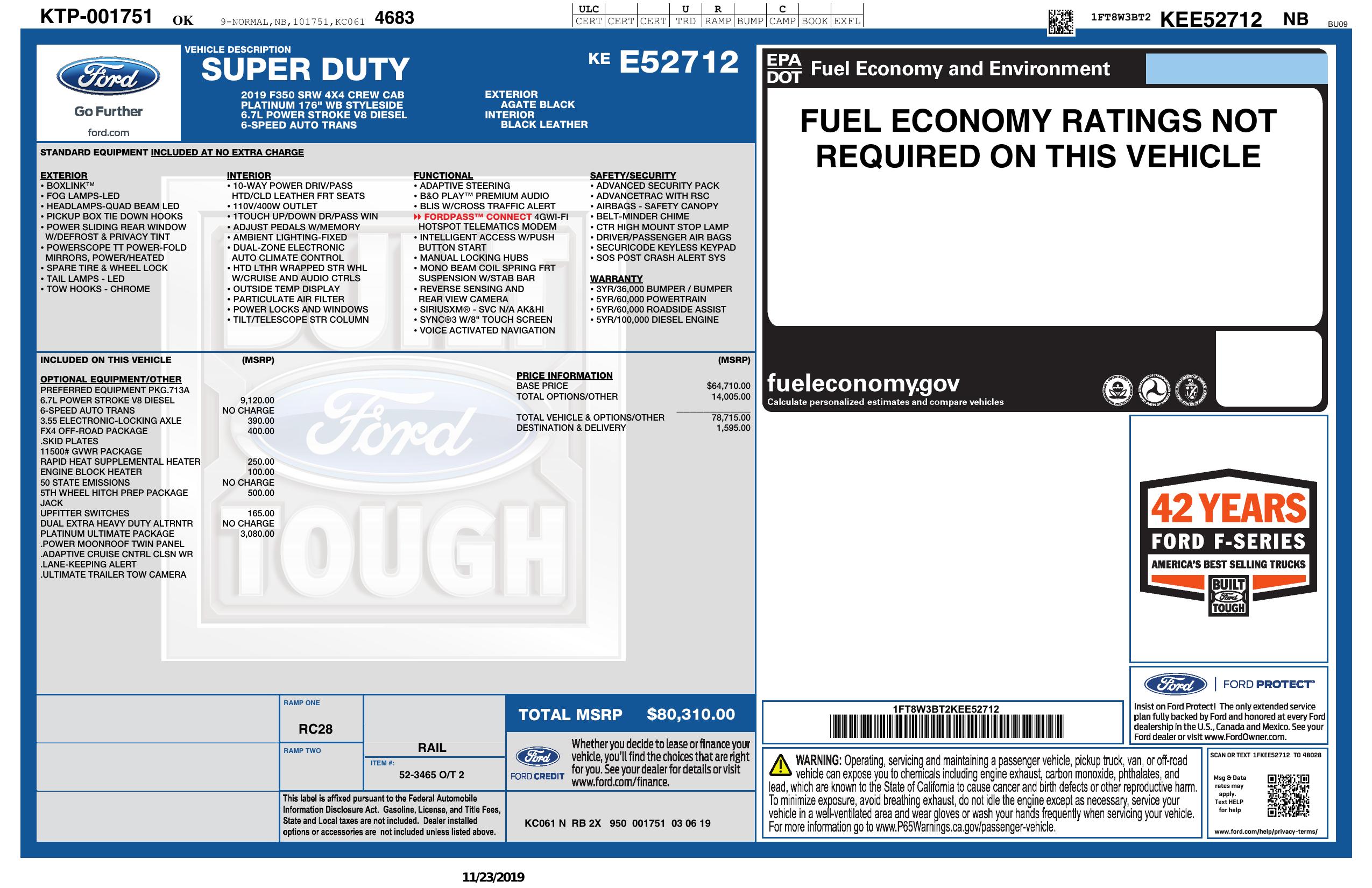 2019 Ford Super Duty F 350 Srw 4 Wd Crew Cab Box