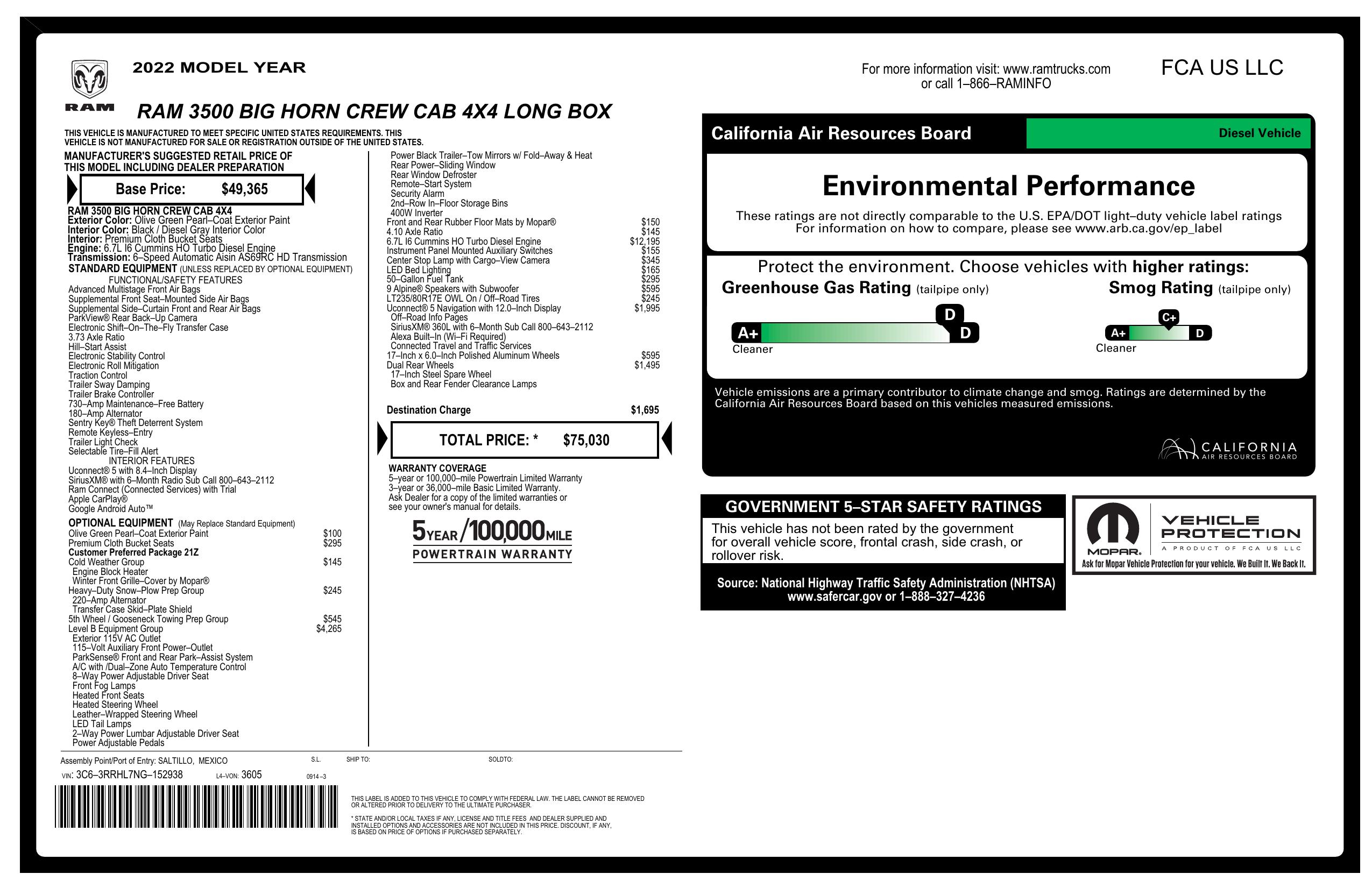 2022 Ram 3500 Big Horn 4x4 Crew Cab 8' Box