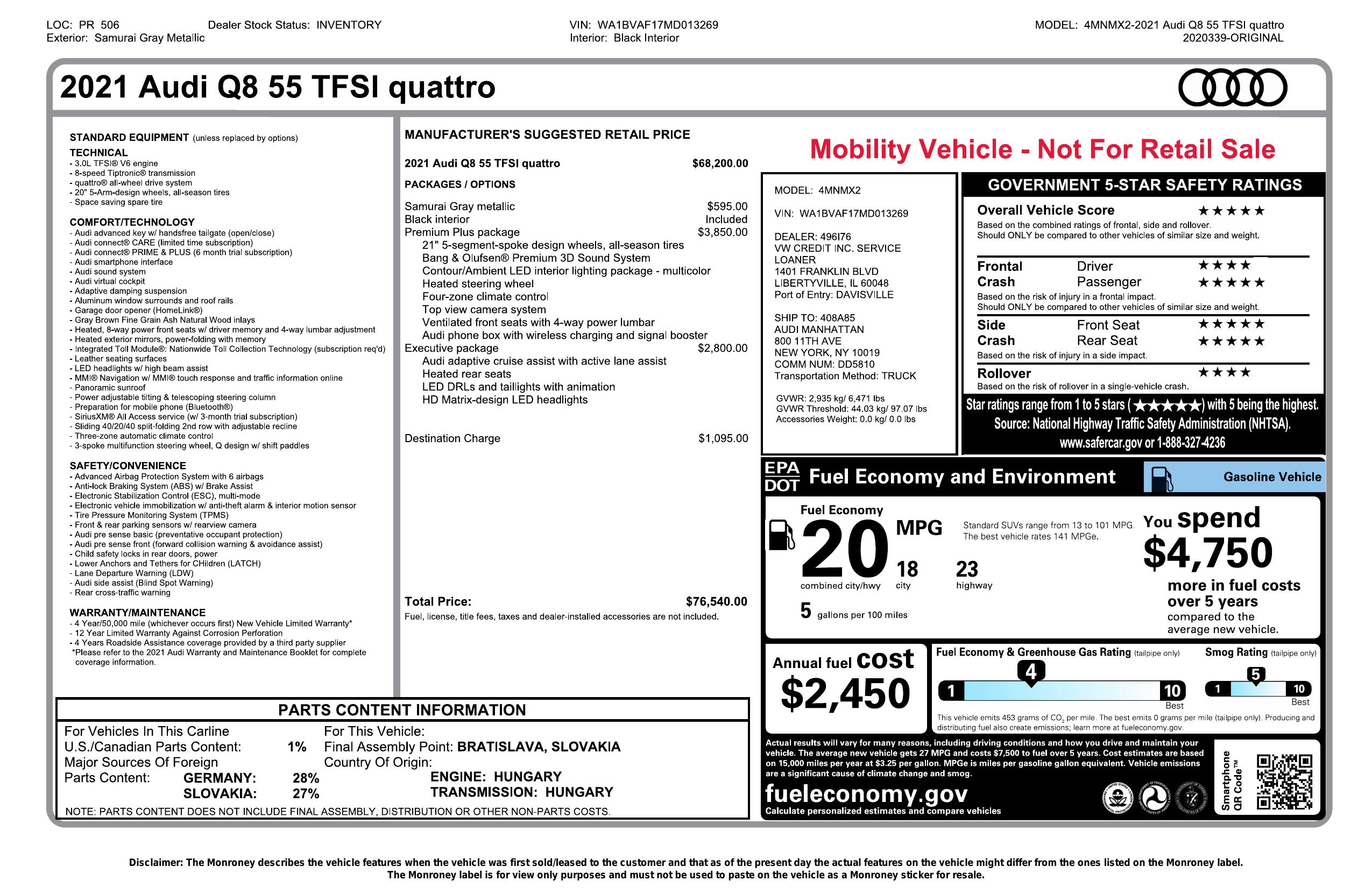 2021 Audi Q8 55 Premium Plus
