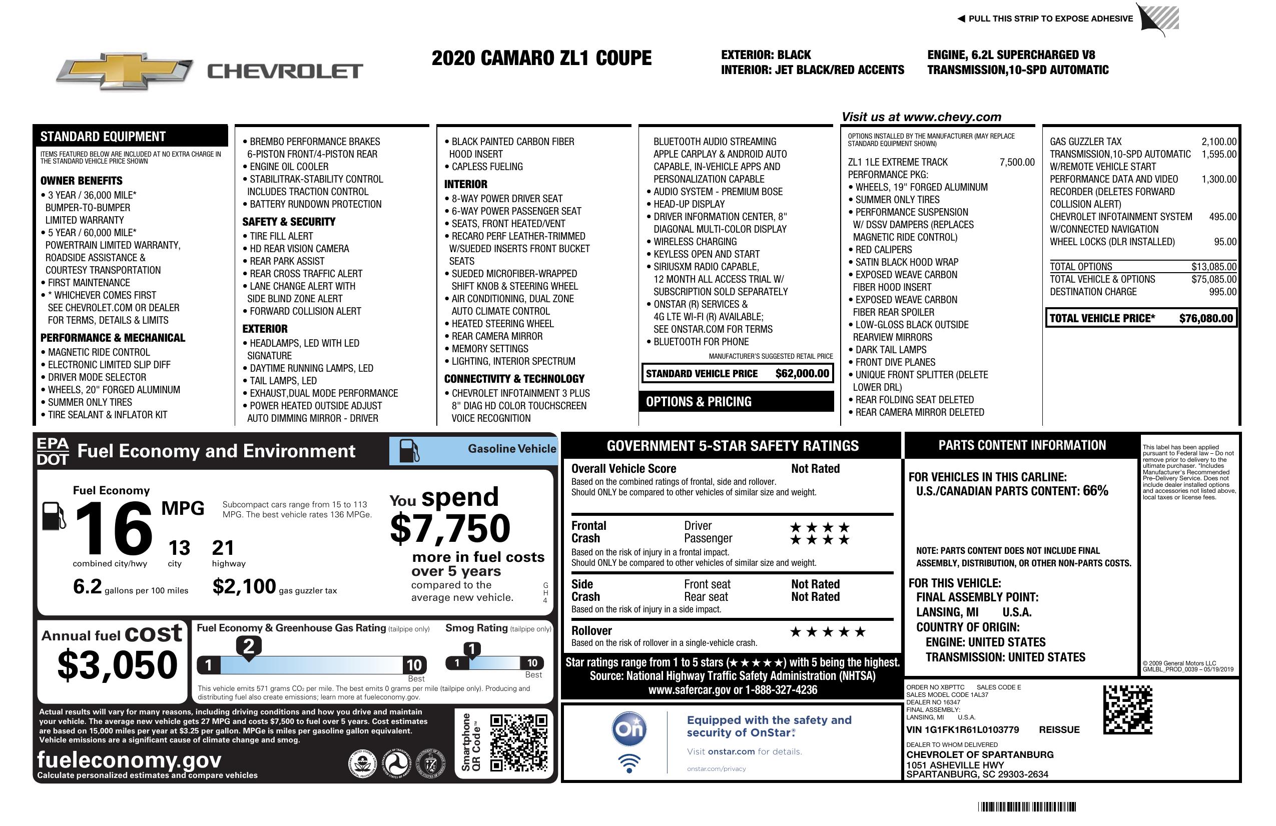 2020 Chevrolet Camaro 2dr Cpe Zl1