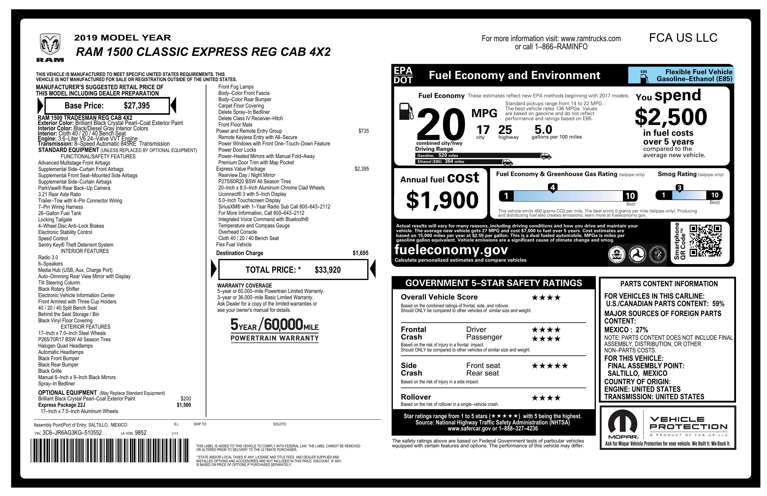 2019 Ram 1500 Classic Express 4x2 Reg Cab 6'4" Box