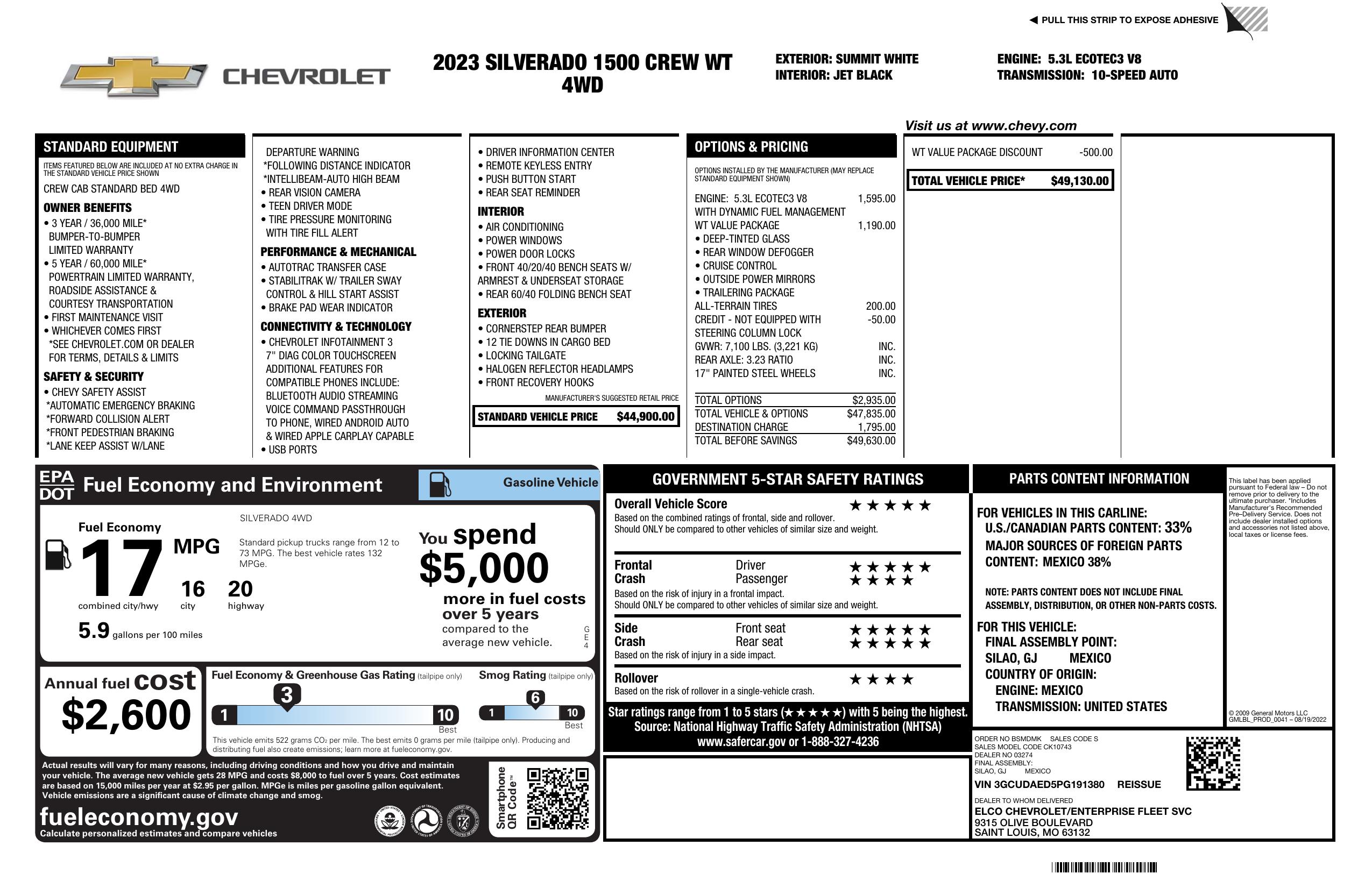 2023 Chevrolet Silverado 1500 4 Wd Crew Cab 157" Work Truck