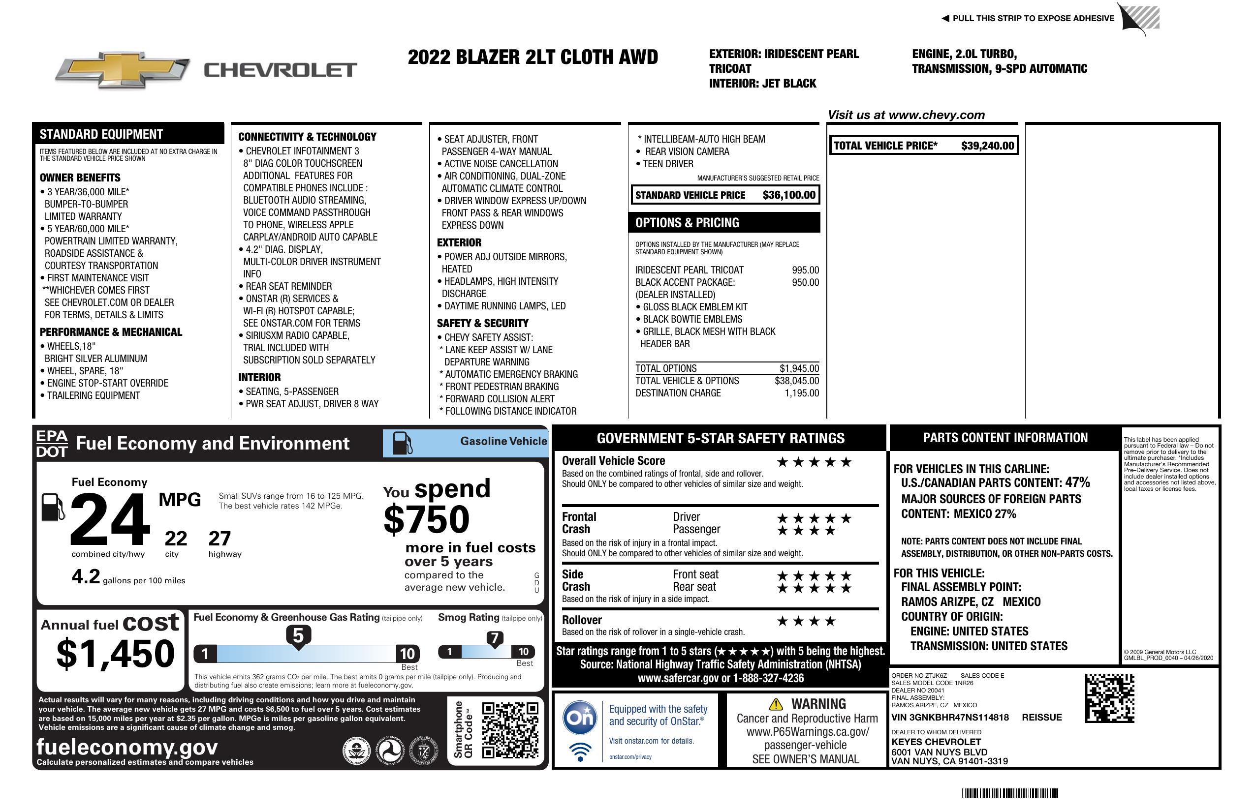 2022 Chevrolet Blazer Awd 4dr Lt W/2 Lt