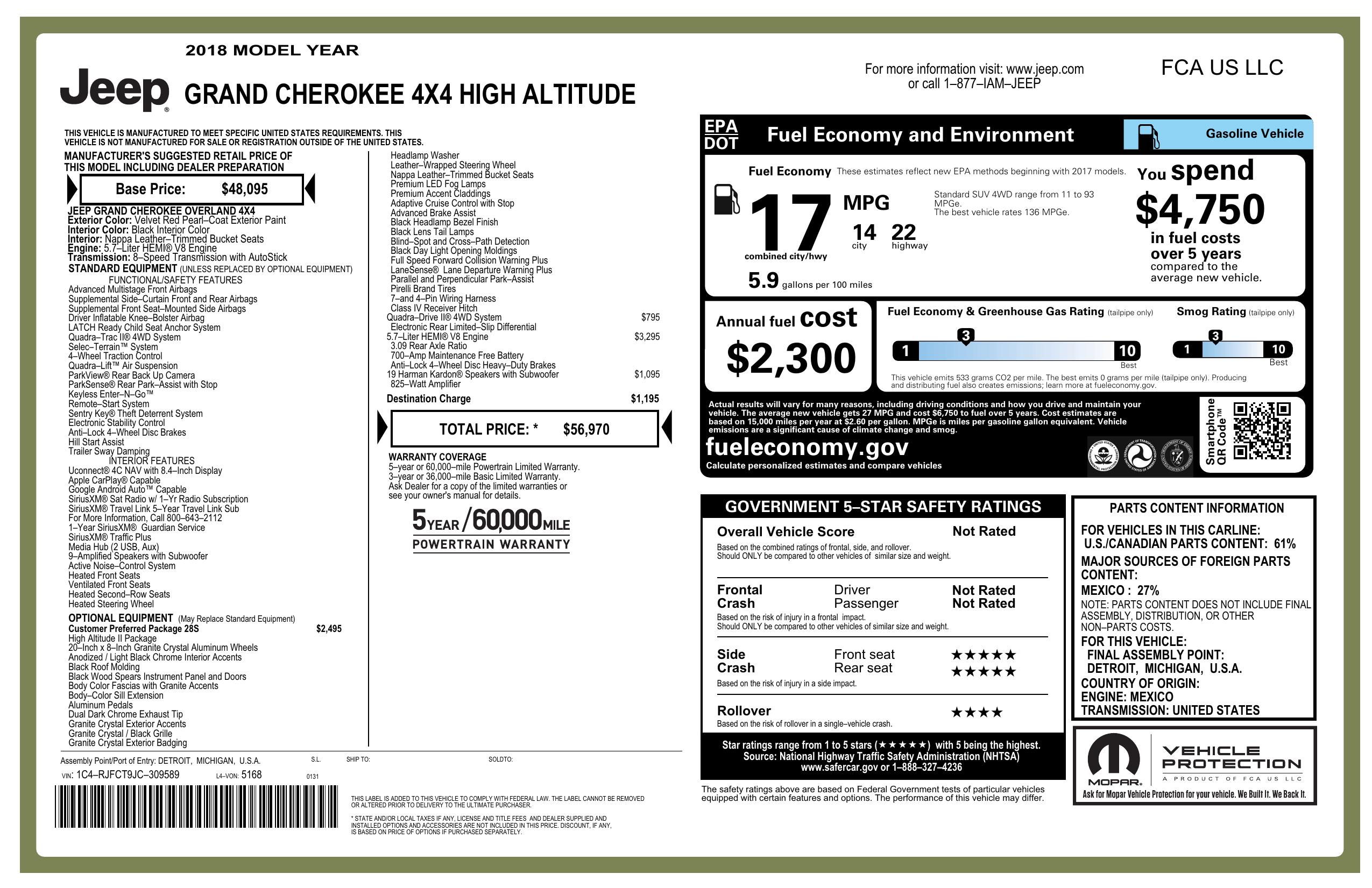2018 Jeep Grand Cherokee High Altitude 4x4 *Ltd Avail*