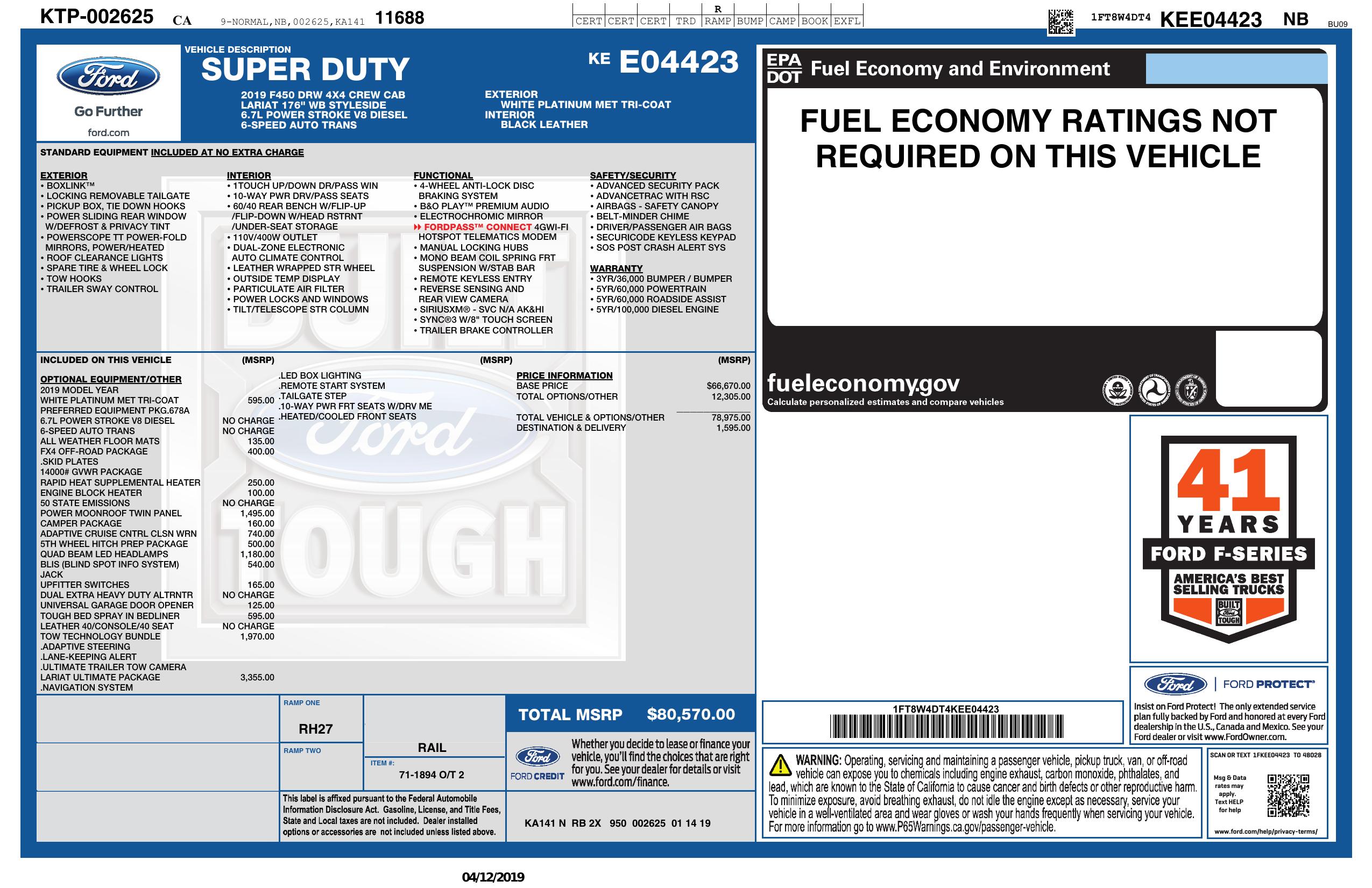 2019 Ford Super Duty F 450 Drw 4 Wd Crew Cab 8' Box